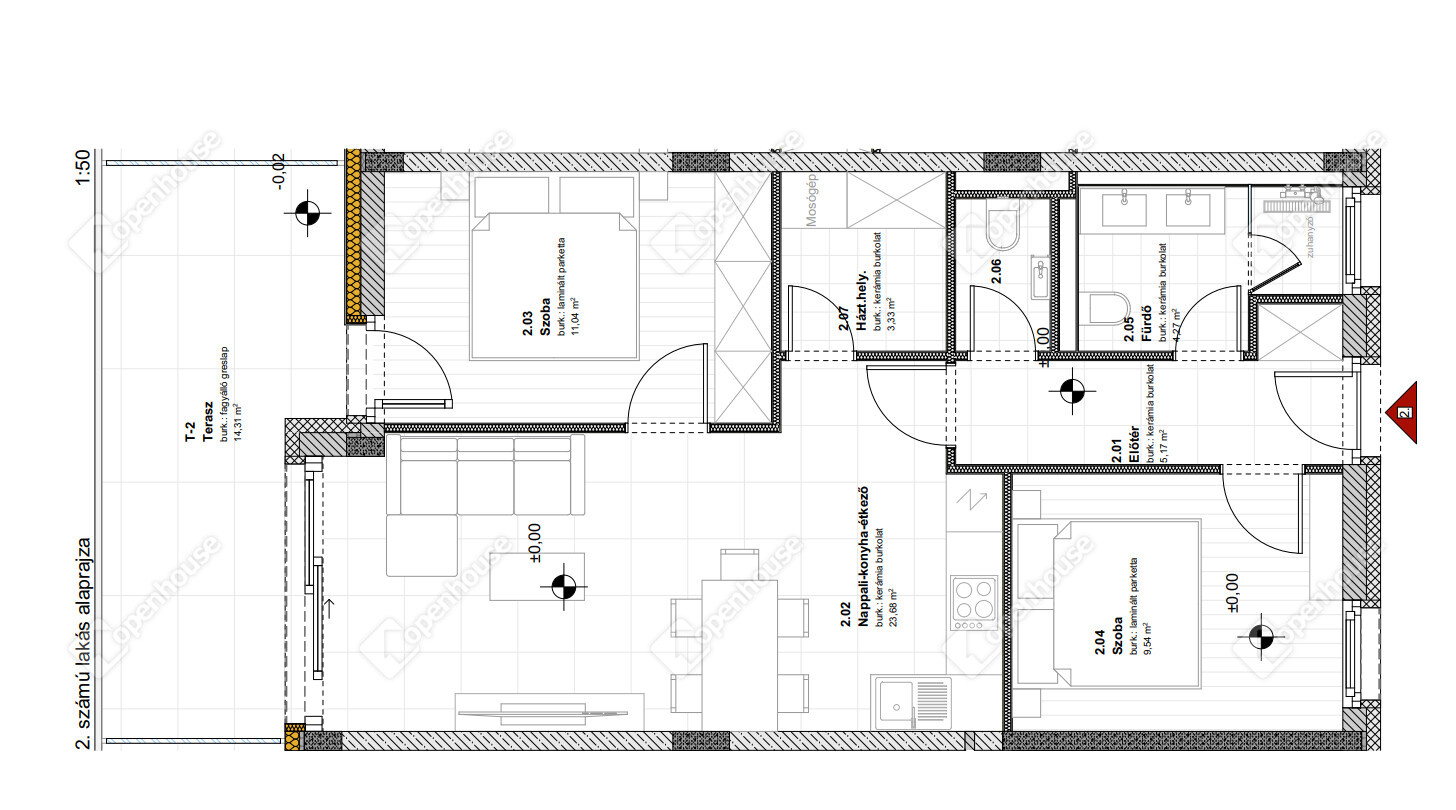 | Háztartási helyiség | 2.96 m2 | Járólap |