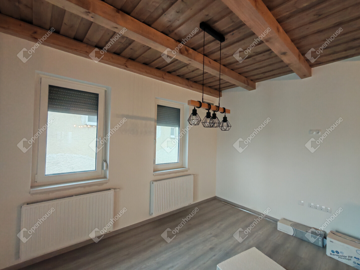 A 1602 m²-es, összközműves telken elhelyezkedő, amerikai konyhás 2025 decemberében elkészült, 80 m²-es újszerű családi ház. Minden részletében a minőséget és a korszerű megoldásokat képviseli. Az amerikai konyhás nappali + 2 hálószobás elrendezés világos, tágas élettereket biztosít, ahol a természetes fény és az elegáns térkapcsolatok dominálnak.
