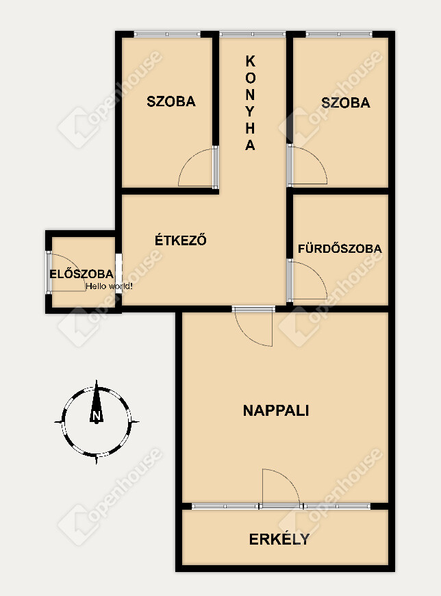 Elrendezés: nappali, 2 hálószoba, konyha, étkező, fürdőszoba, előszoba
