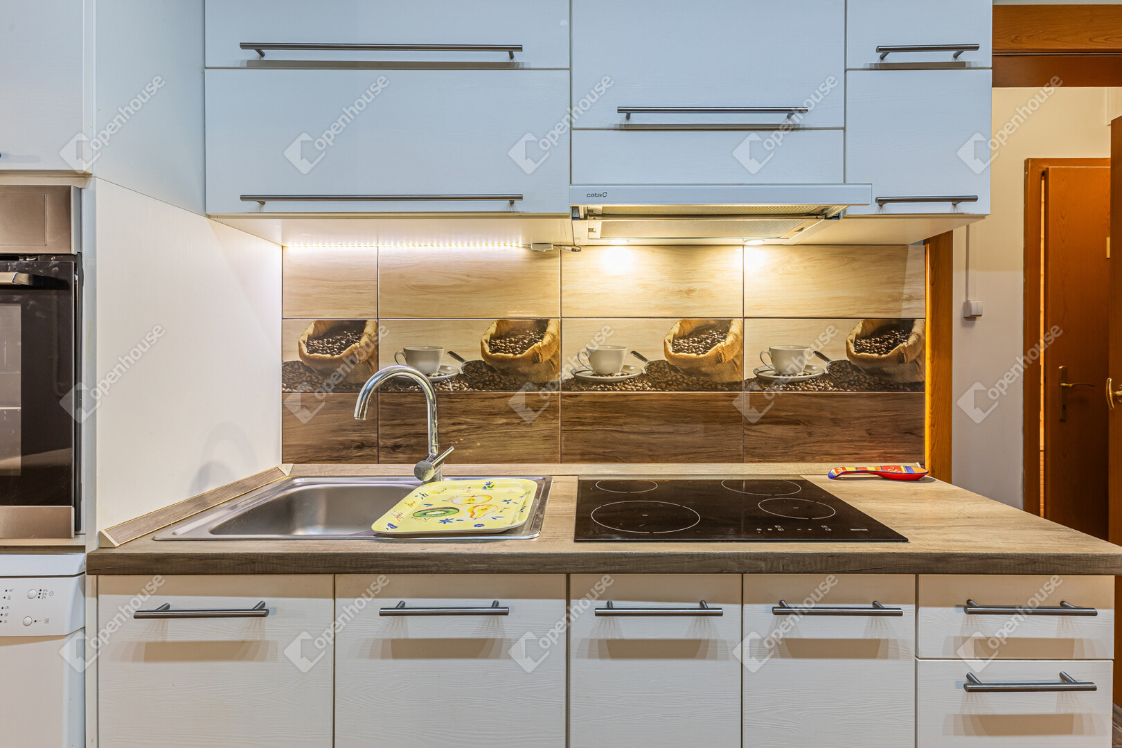 Fiatalos, újszerű, MAGASFÉNYŰ HÓFEHÉR konyhabútor, alig használt beépített gépekkel