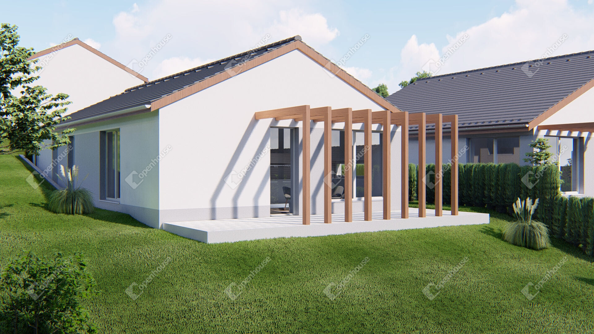 A 2025-ös projekt részeként megvalósuló, 61 m²-es lakóterületű ingatlan ideális választás lehet azok számára, akik nyugalomra, korszerű műszaki tartalomra és alacsony fenntartási költségekre vágynak. Az ingatlan saját, körbekerített telekrésszel, valamint térkövezett kocsibeállóval rendelkezik, így a mindennapi kényelem és a privát élettér is biztosított.