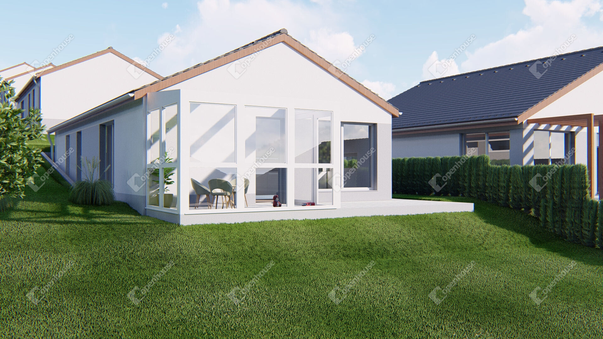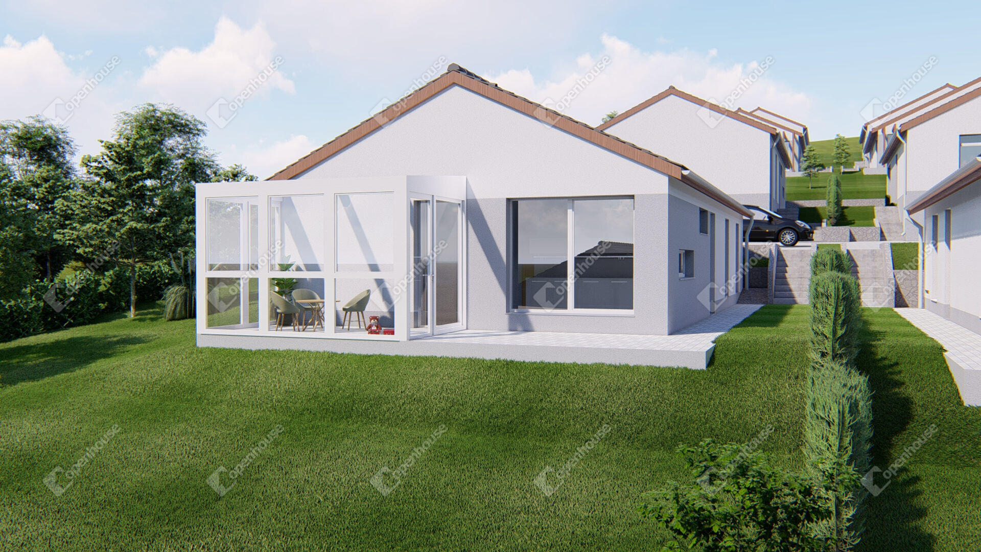 A ház járólapozott terasszal, valamint tető-előkészítéssel rendelkezik. A háromrétegű, fehér színű műanyag nyílászárók kiváló hő- és hangszigetelést biztosítanak, minden ablak redőnnyel felszerelt, igény szerint szúnyogháló is elhelyezhető.