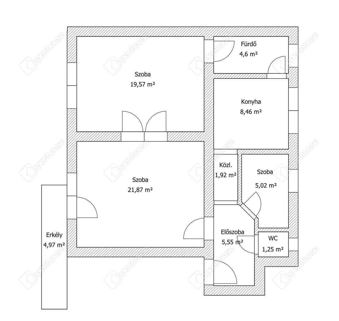 | Erkély | 4.90 m2 | Kőburkolat |