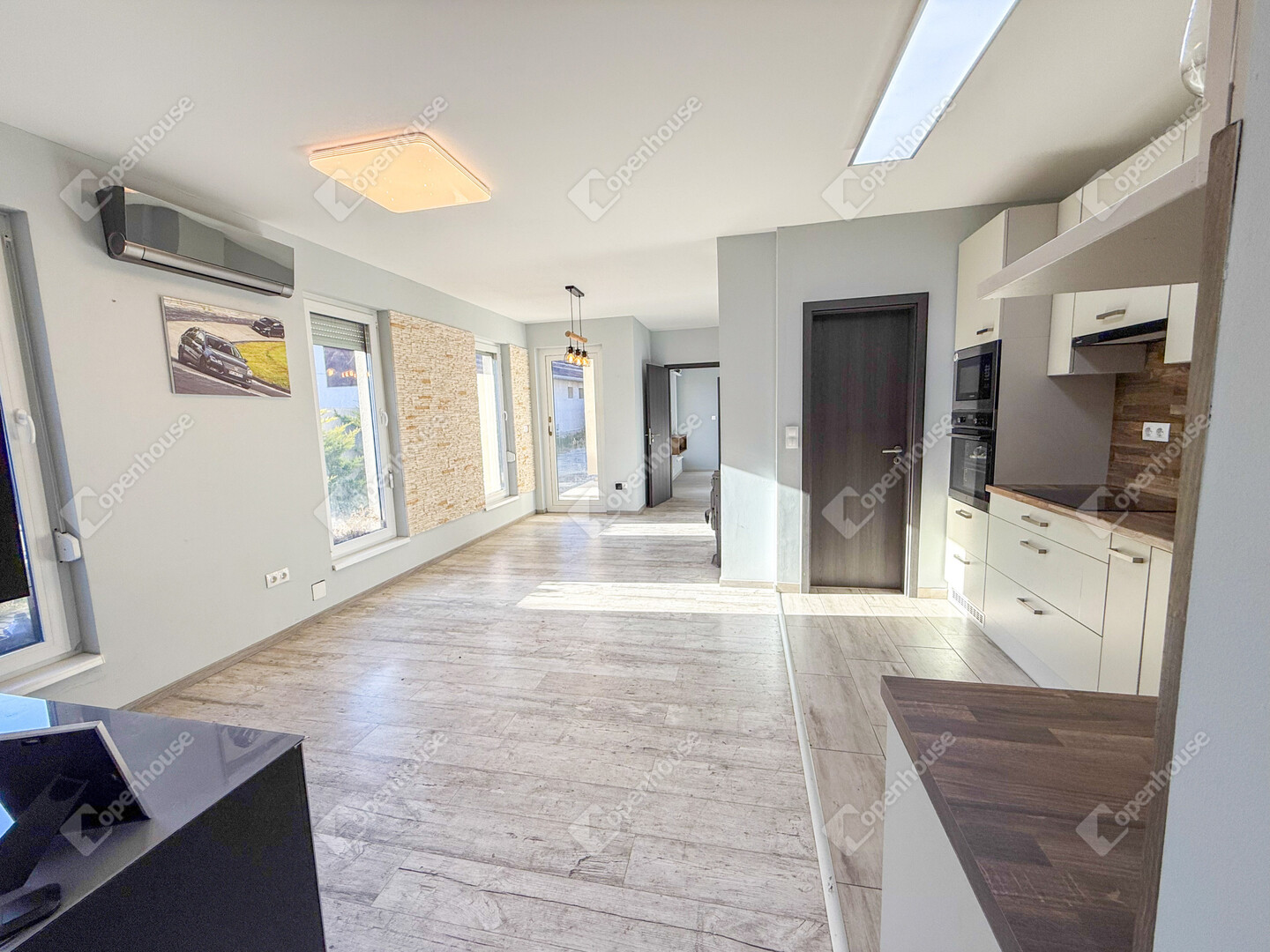 - Világos, nyitott nappali-étkező-konyha, nagy ablakokkal és közvetlen kertkapcsolattal.
