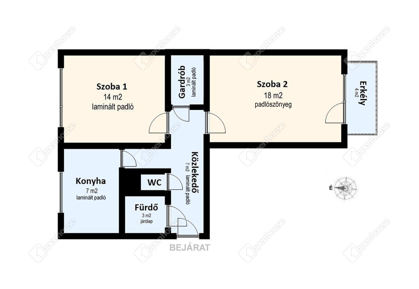 | Szoba | 18.50 m2 | Laminált padló |