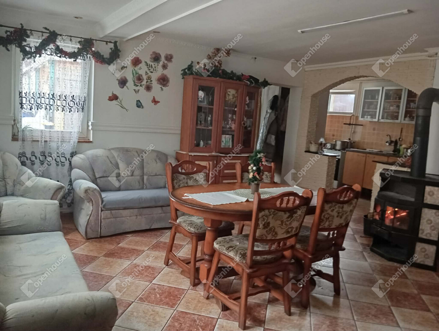 A ház teljes közműellátással rendelkezik: víz, villany, gáz, csatorna bekötve, így azonnal használatba vehető. A belső terek otthonosak, a fotók alapján a nappali mérete és a konyha jó kapcsolata kellemes családi életteret biztosít.