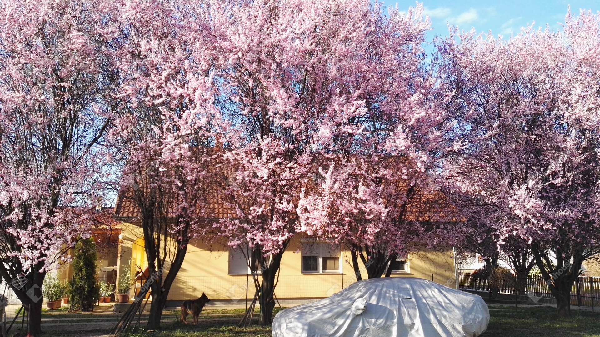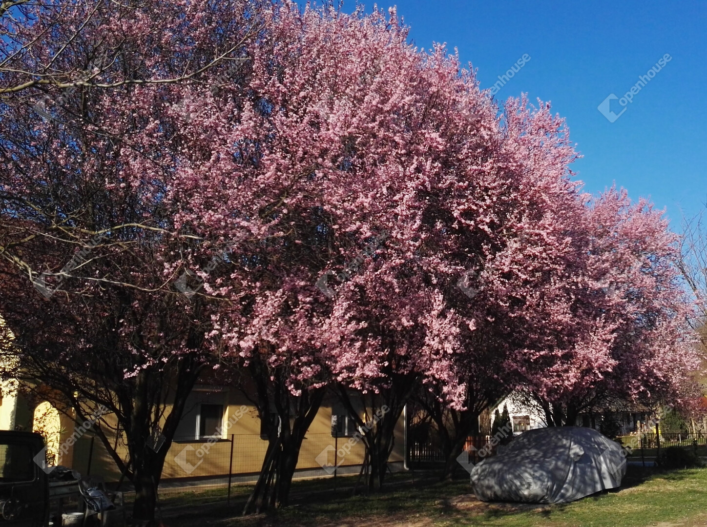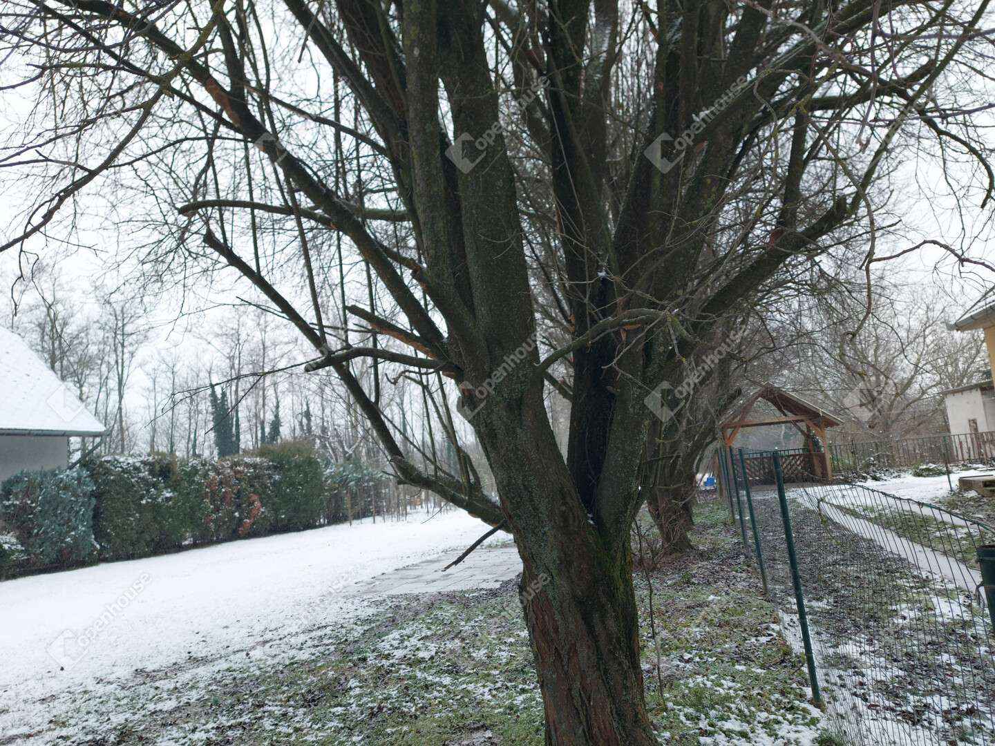A kertben diófák és almafák vannak ültetve.