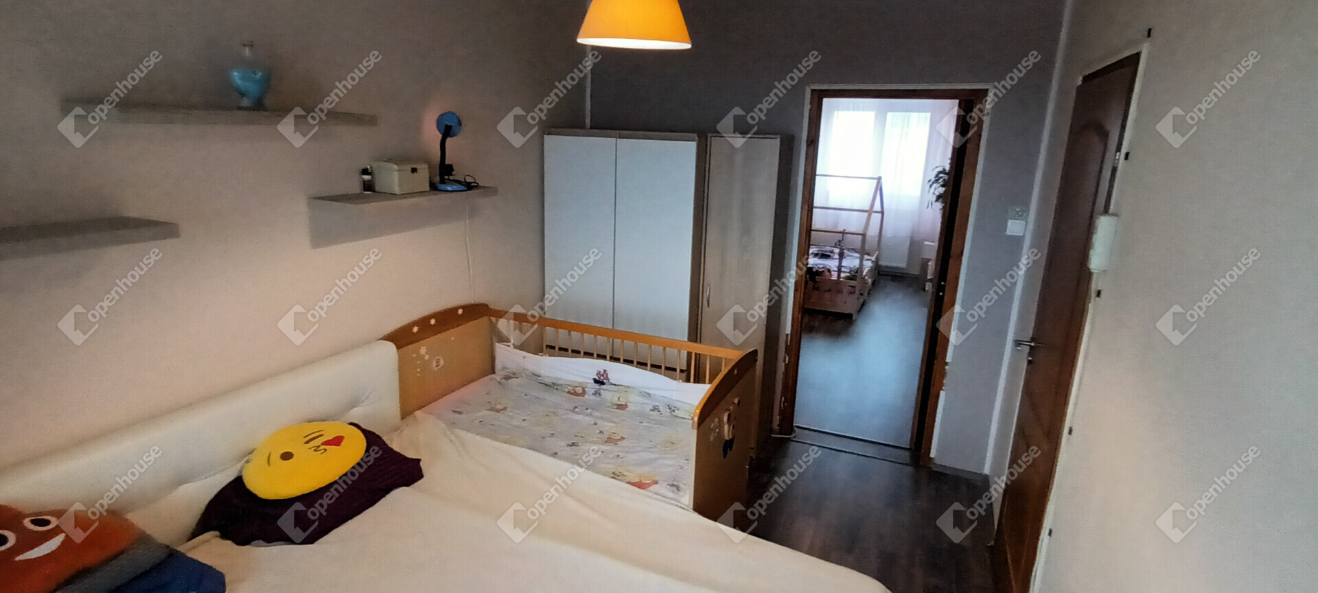 A szobák , köszönhetően a délkeleti fekvésnek és a körpanorámának nagyon világosak. A 3 nagy szoba körüljárható, így kellő teret ad akár 3 gyermeknek is a játékra , tanulásra. A 4. szoba teljesen külön helyezkedik el, jelenleg is otthoni munkavégzésre alkalmas irodának használják. A loggiáról nagyon szép kilátás nyílik a lakást körülvevő zöldövezetre.