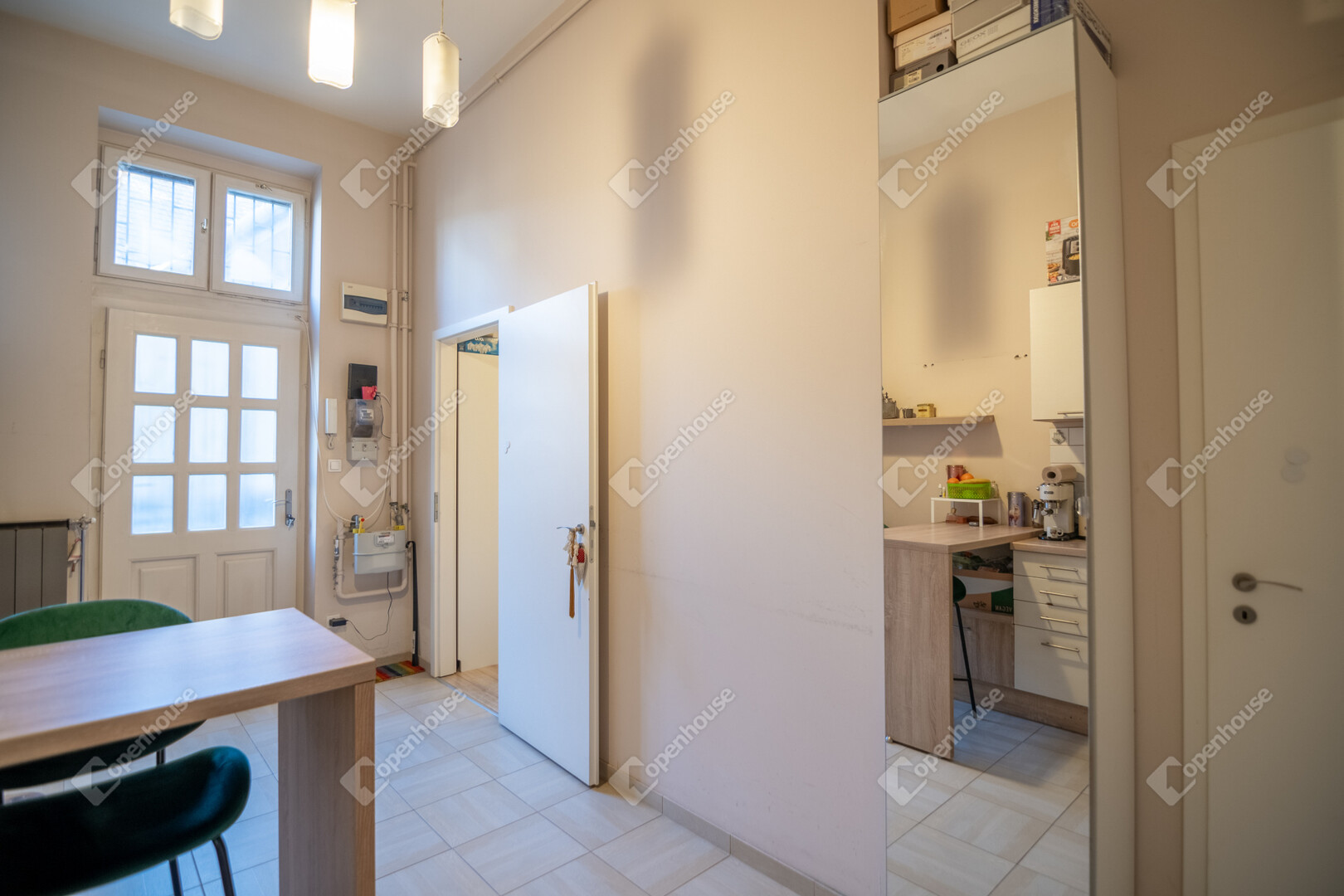 - belépve előtér, konyha és étkező található