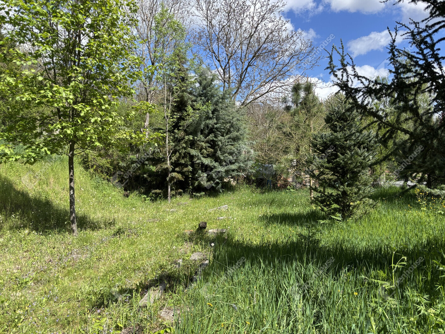 A telek felső pontjáról pazar panoráma tárul a környező völgyre – ideális hely egy reggeli kávéhoz vagy egy csendes naplementéhez. Az alsó terület gondosan parkosított, különleges fenyőkkel és dísznövényekkel beültetett, részben teraszosított.