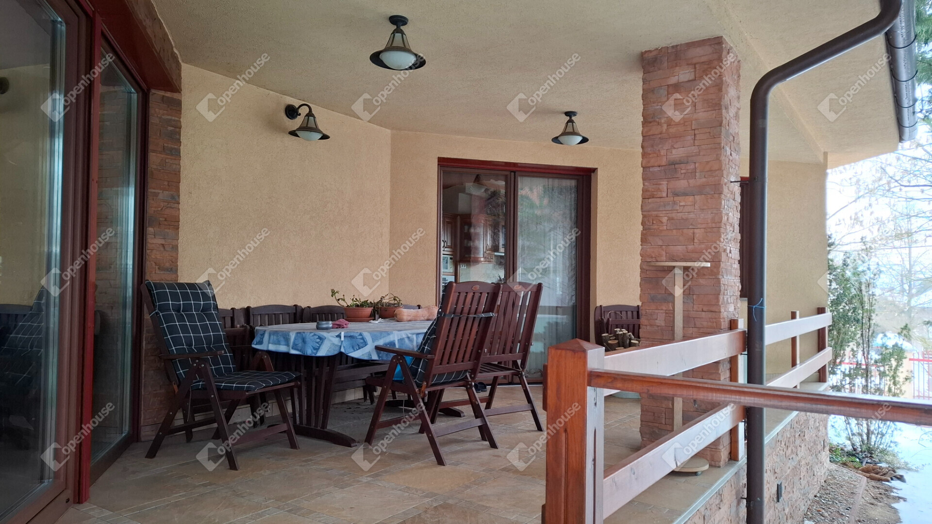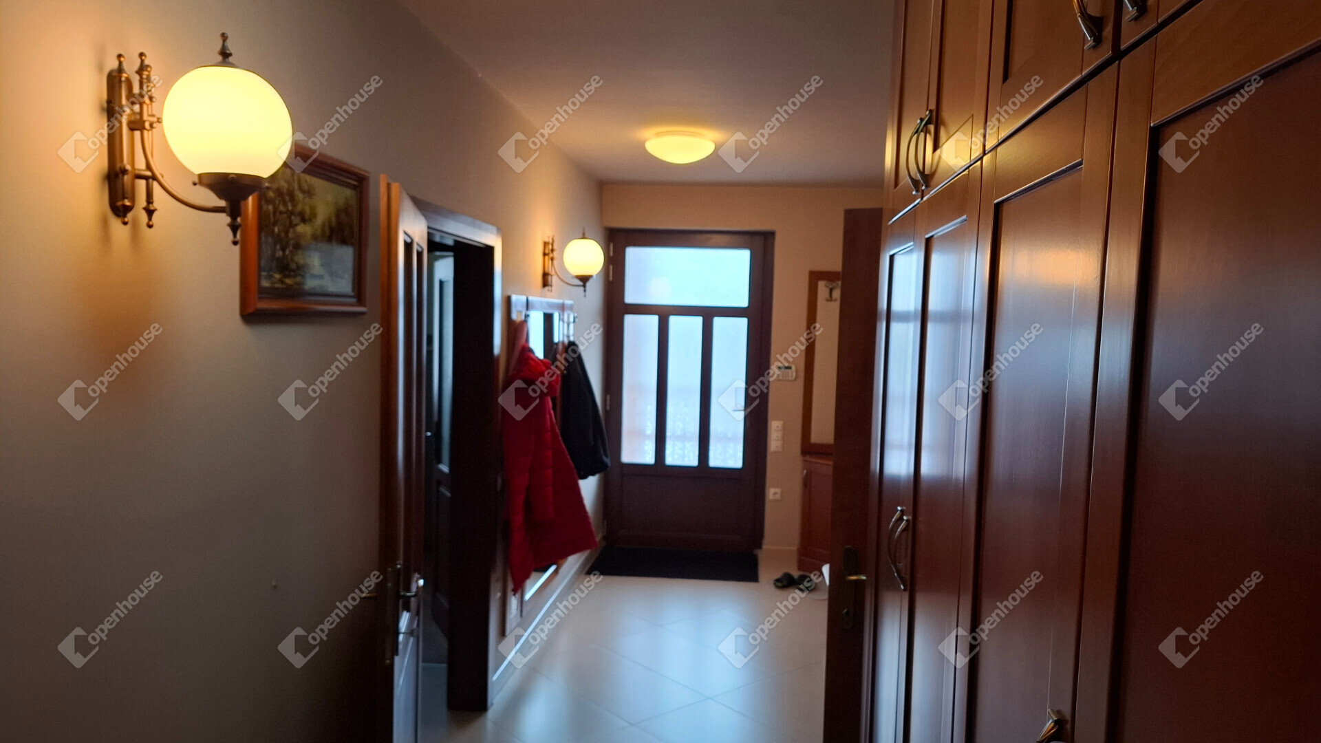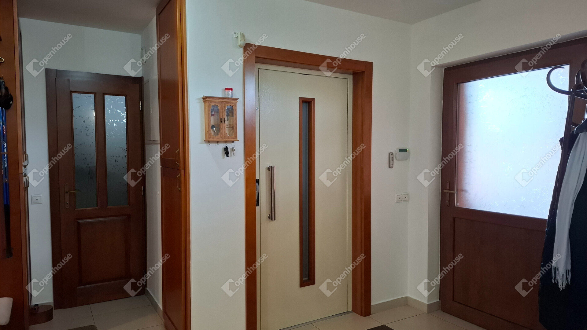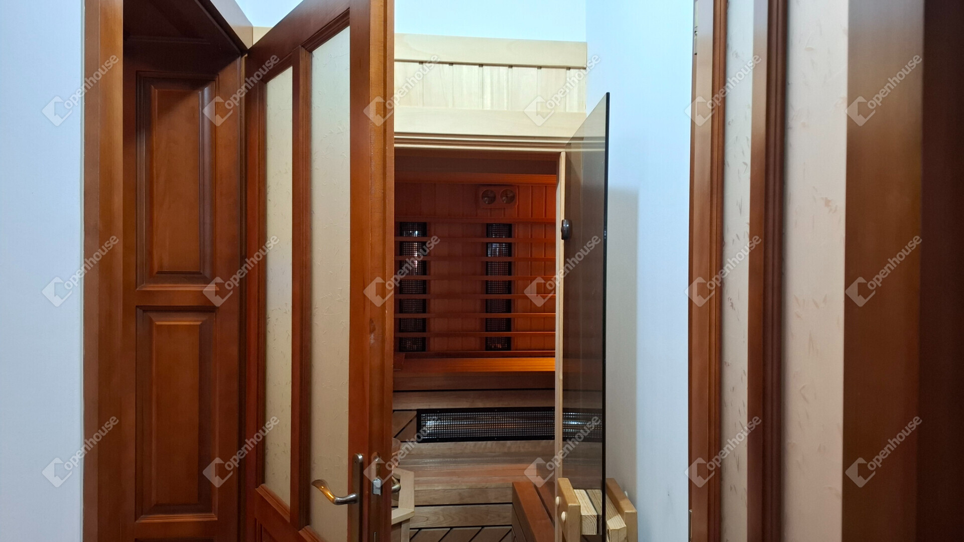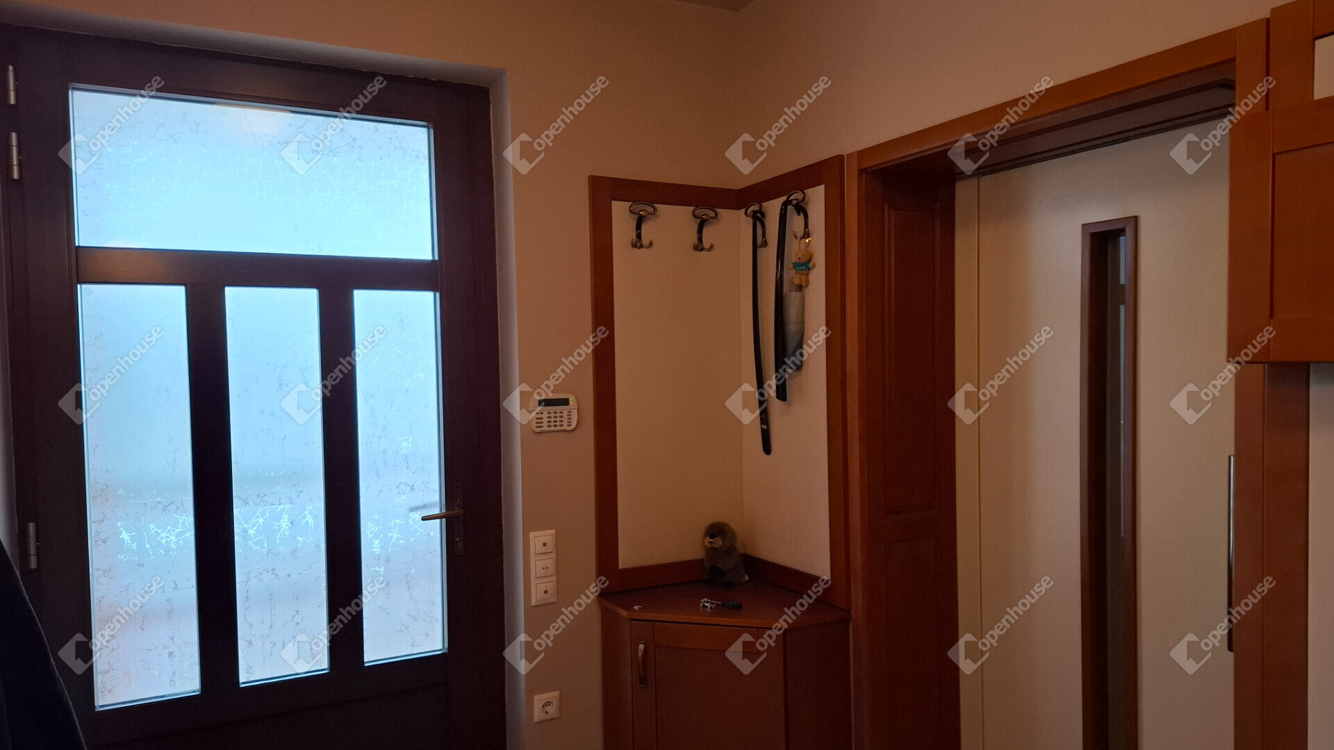 A családi ház kétkamrás szigetelt, kívül alumínium, belül fa Internorm nyílászárókkal szerelt, melyen szigetelt napfénycsíkos alumíniumból készült elektromos redőnyök biztosítják a csendet és nyugalmat. A redőnyök központilag automatizáltak.