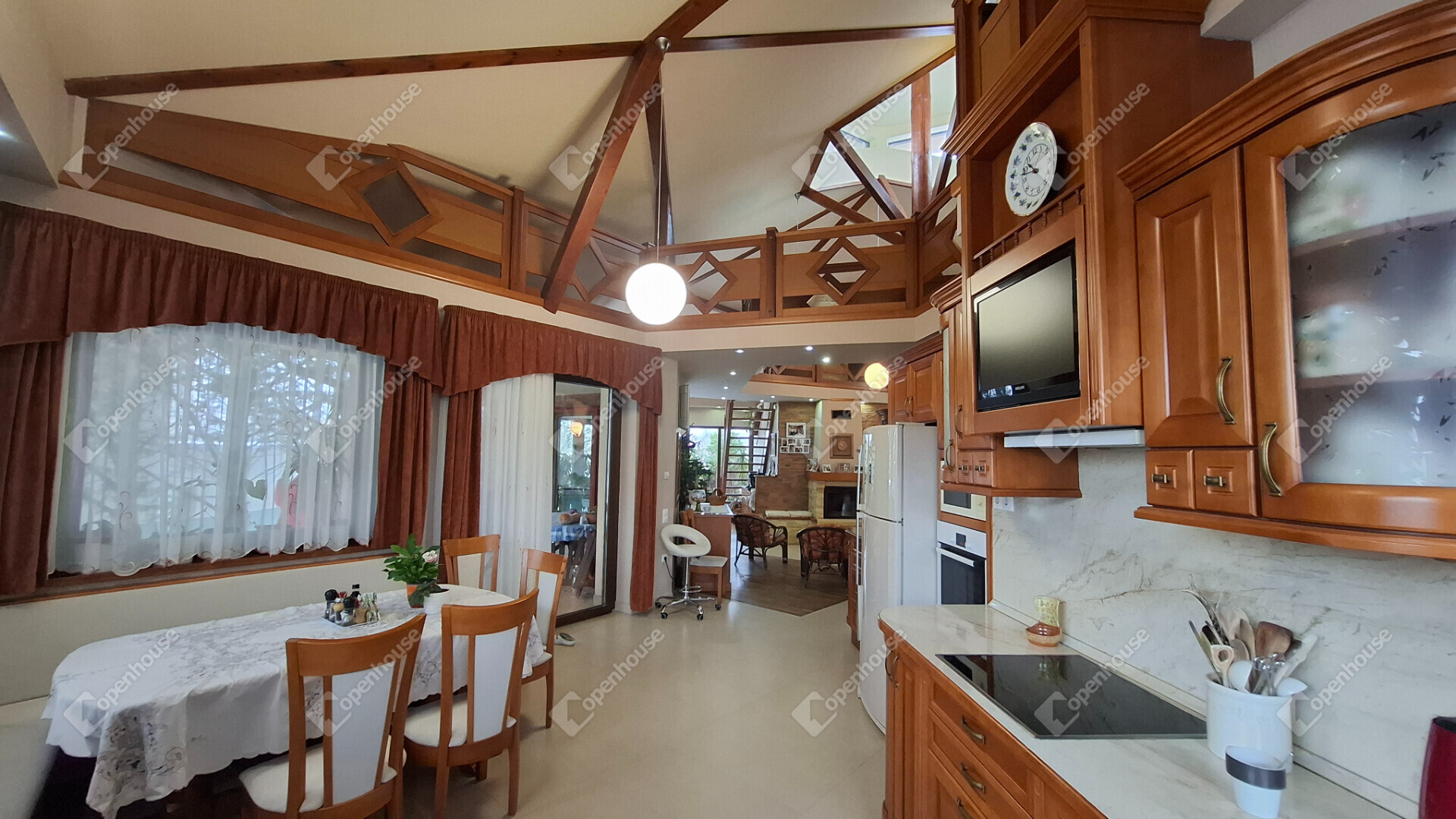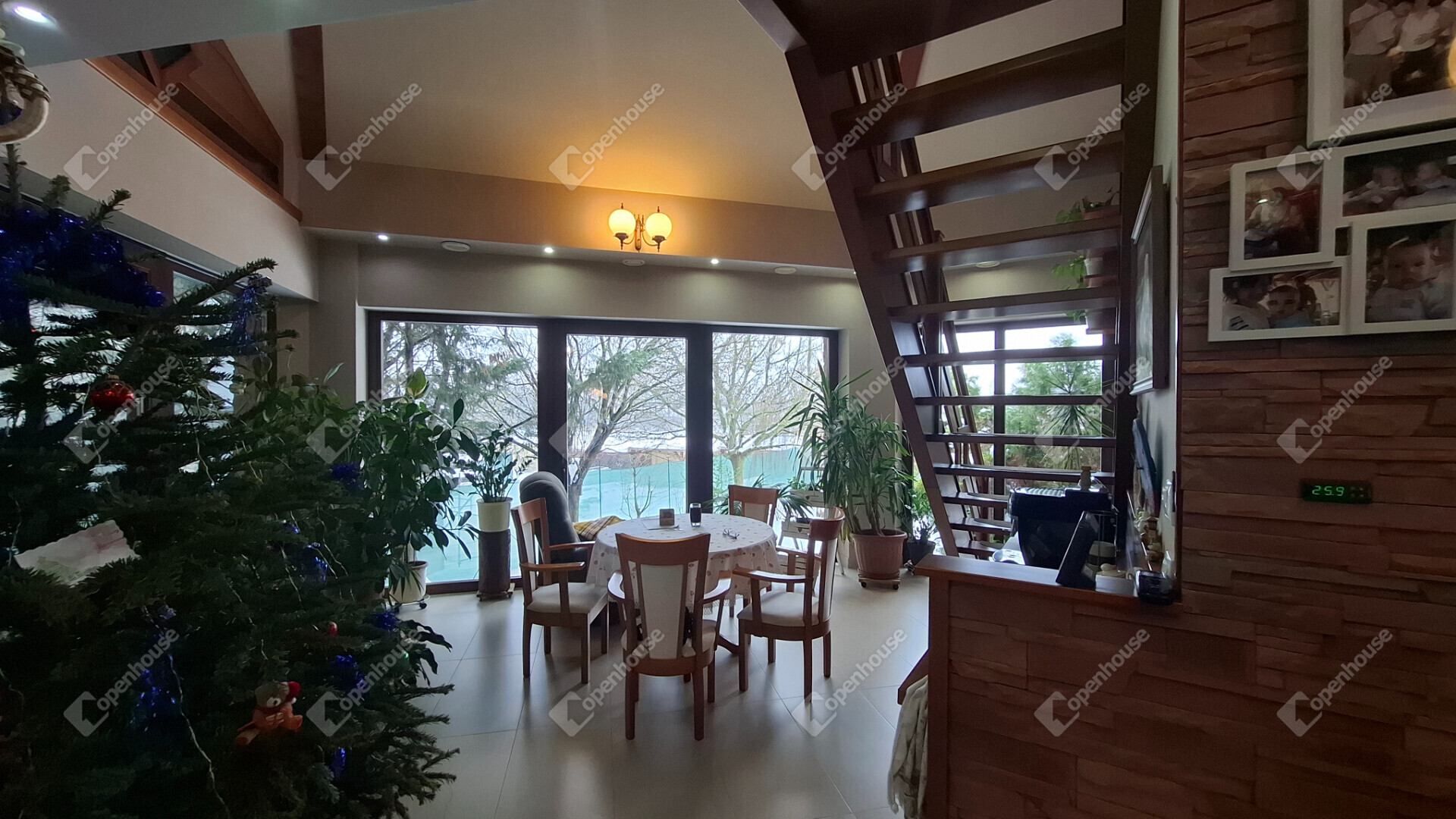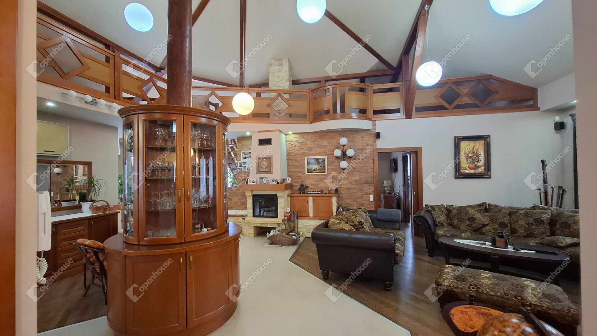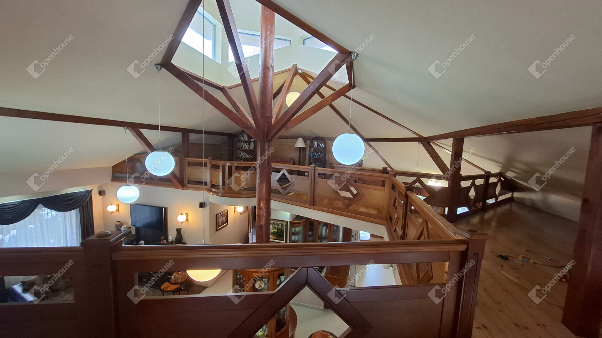A nappali belmagassága 4,17 méter, körbegalériázott, a galérián fent egy gyerek játszószoba, olvasósarok, egy kis tároló és a gépészeti helyiség található.