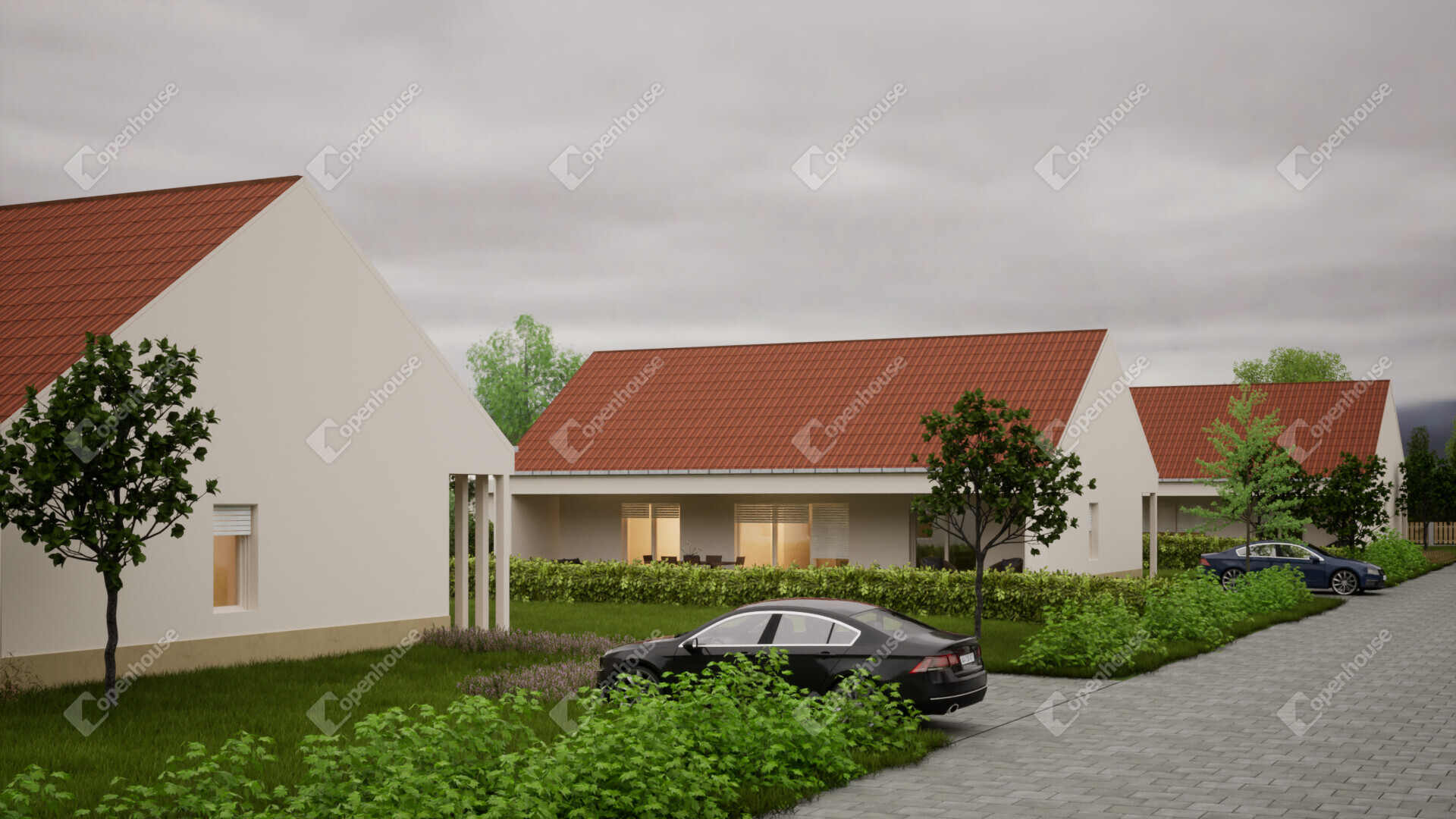 - 2db térkövezett kocsibeálló,
