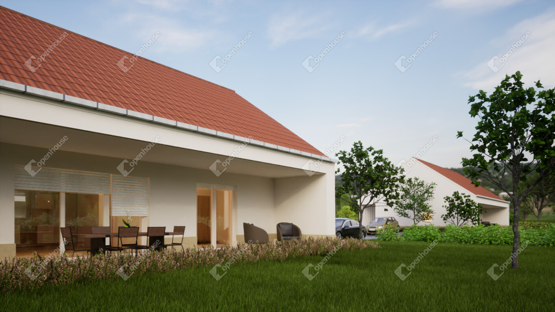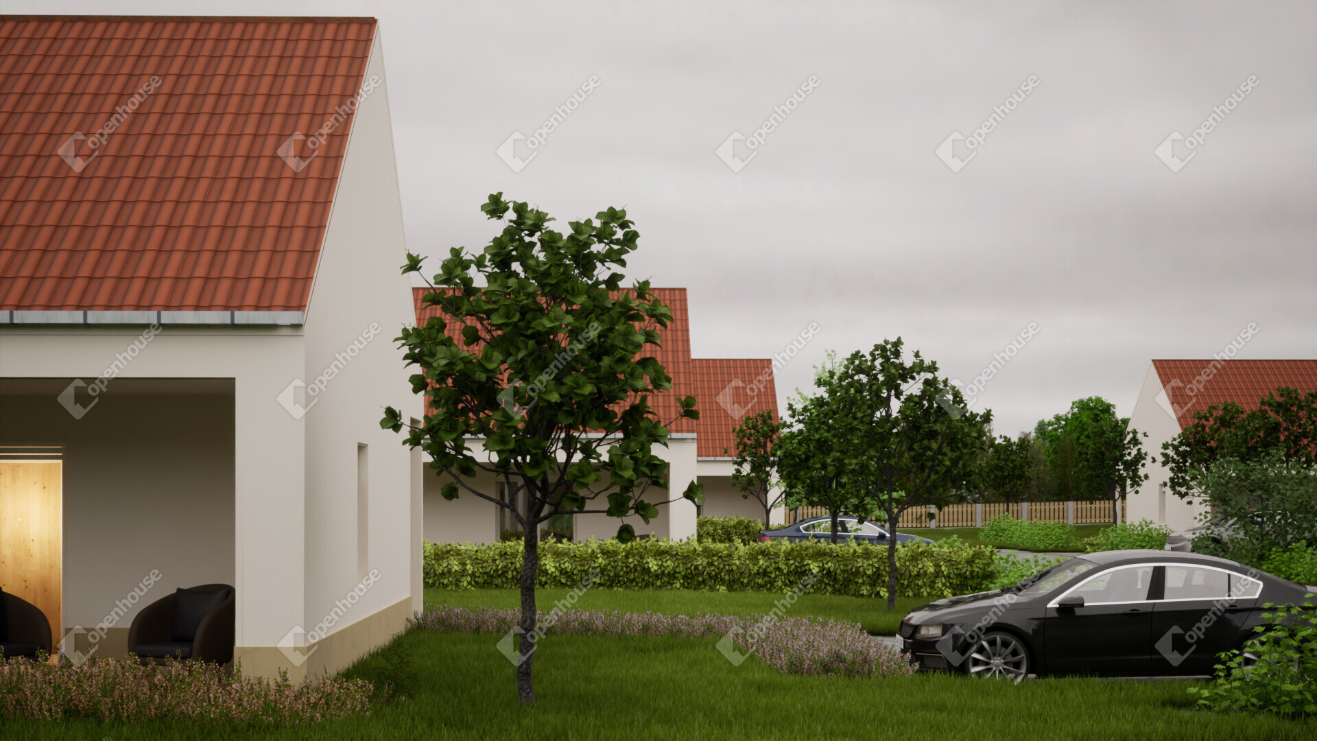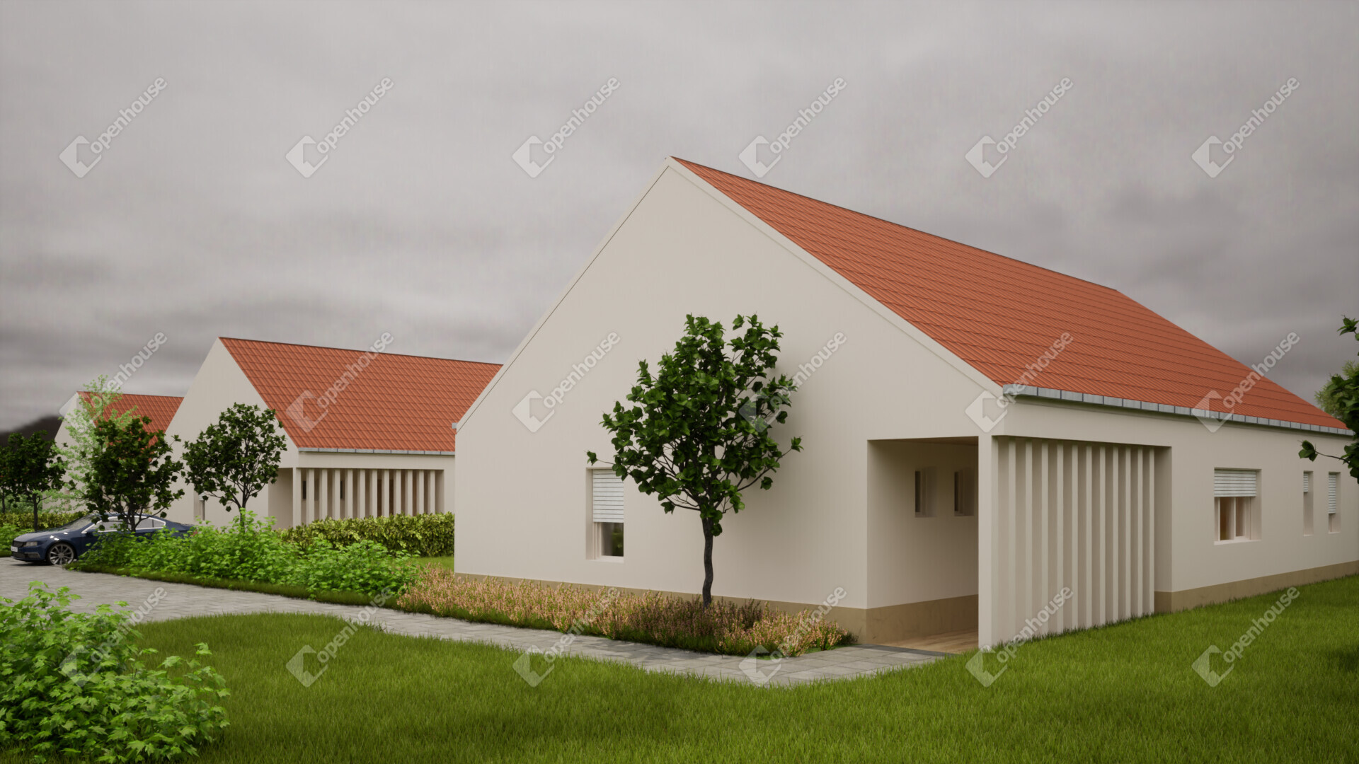 - 94m2-es családi ház + 36m2 fedett terasz + 9m2 fedett szélfogó,