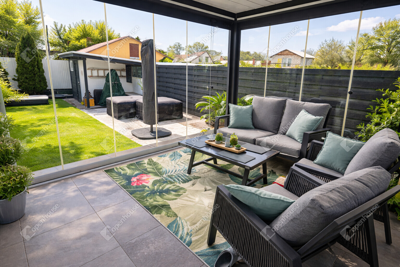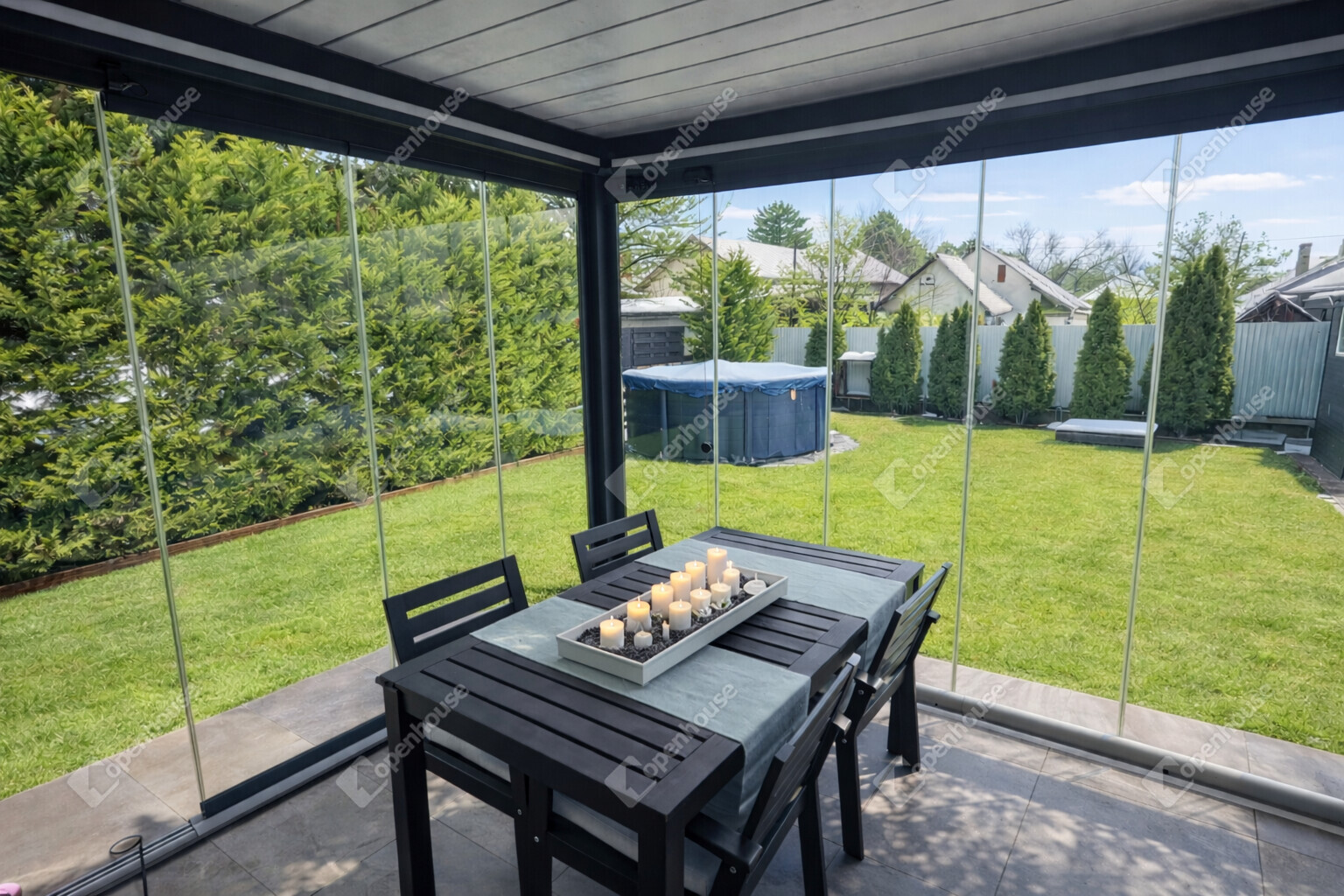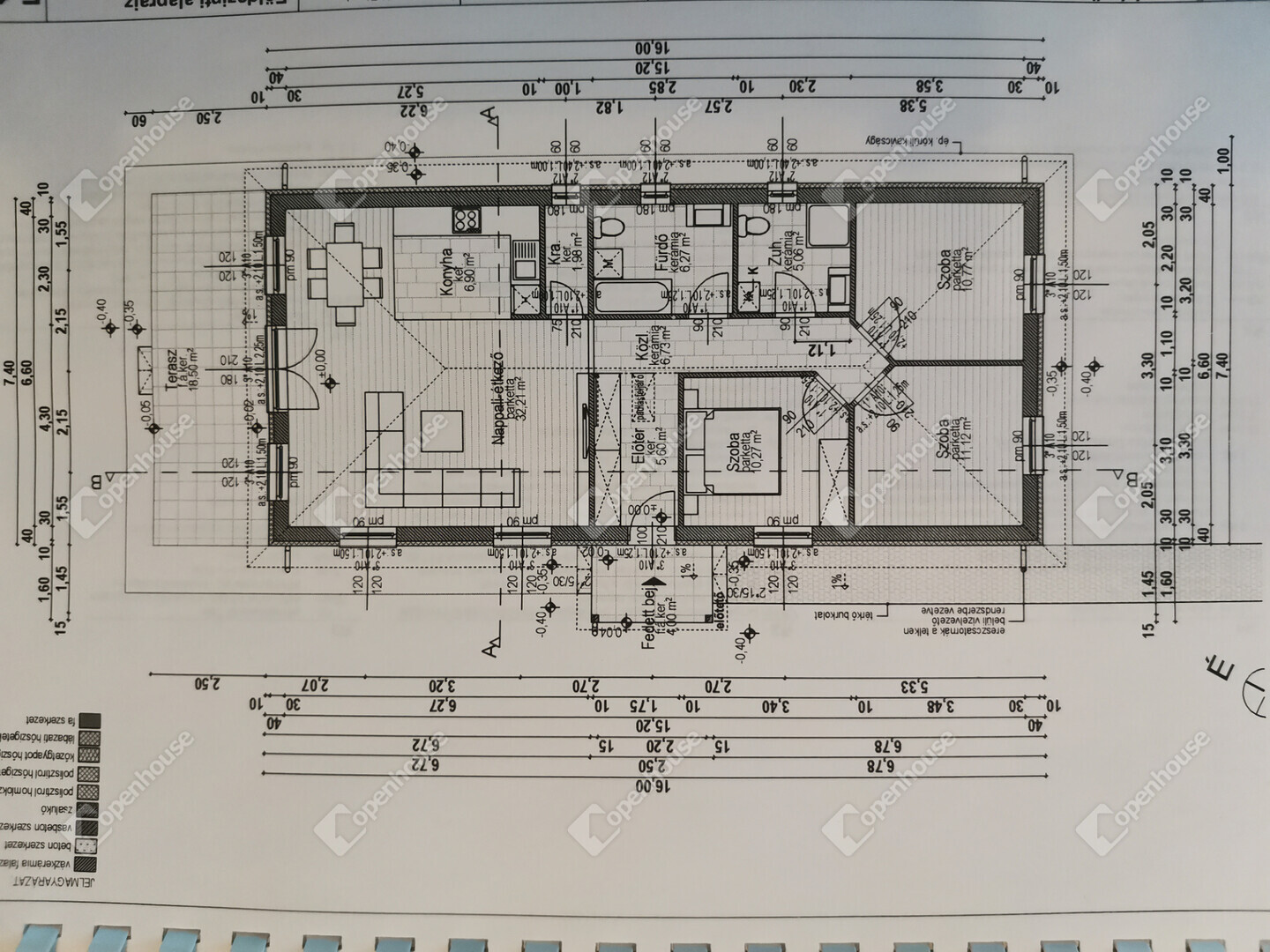 Terasz: 21 m² (ebből 18 m² fedett, 6×3 m)