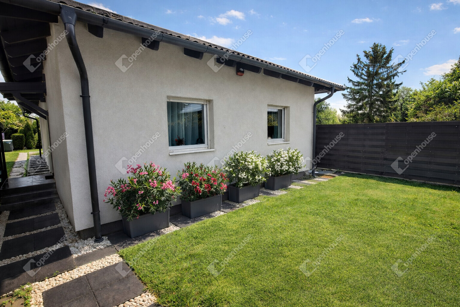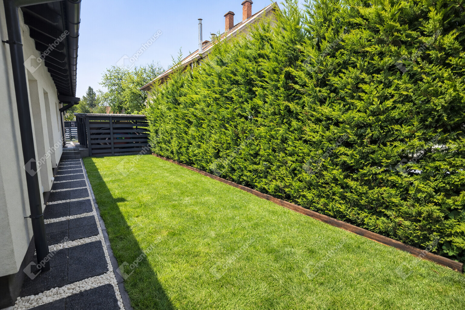 Gondosan kialakított, füvesített kert