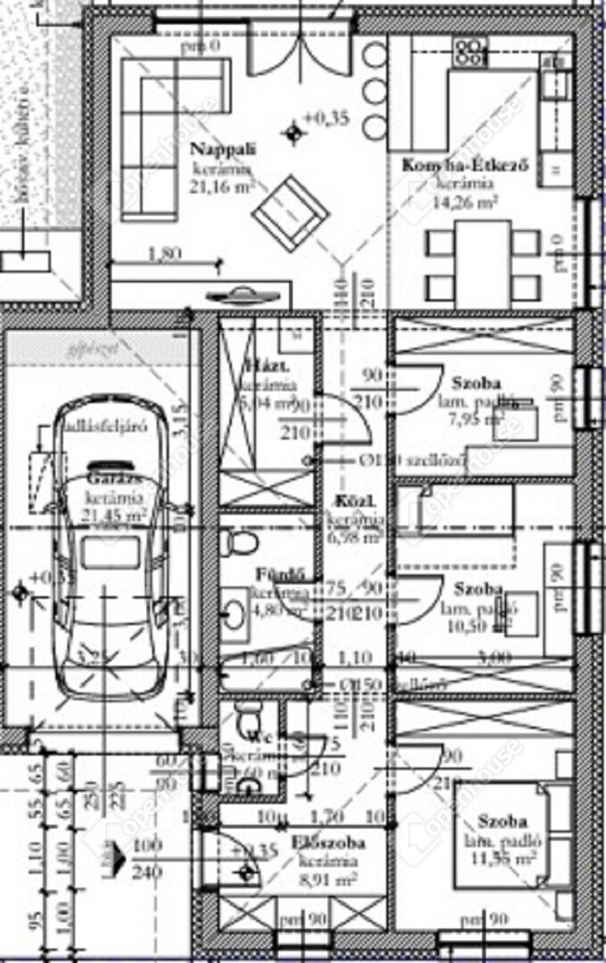 A garázs közvetlenül kapcsolódik a házhoz, így kényelmes és biztonságos megoldást nyújt.