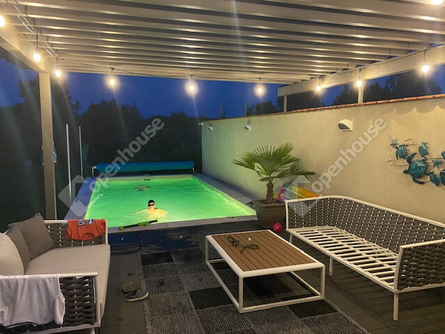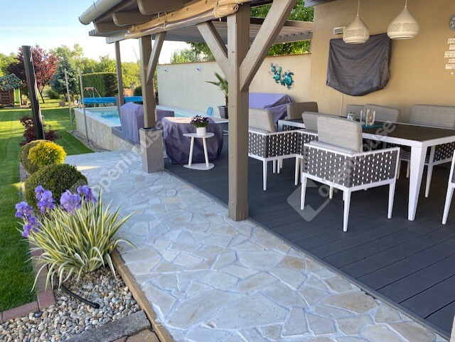 Fűthető, 18 m2-es kerti fürdőmedence és gondtalan pihenést biztosító 47 m2 pergola.