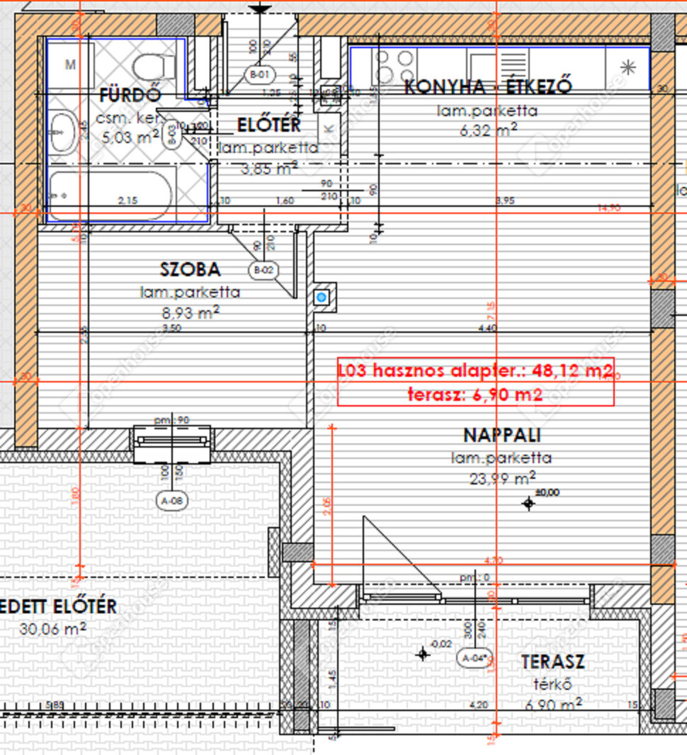 | Nappali | 23.99 m2 | Laminált padló |
