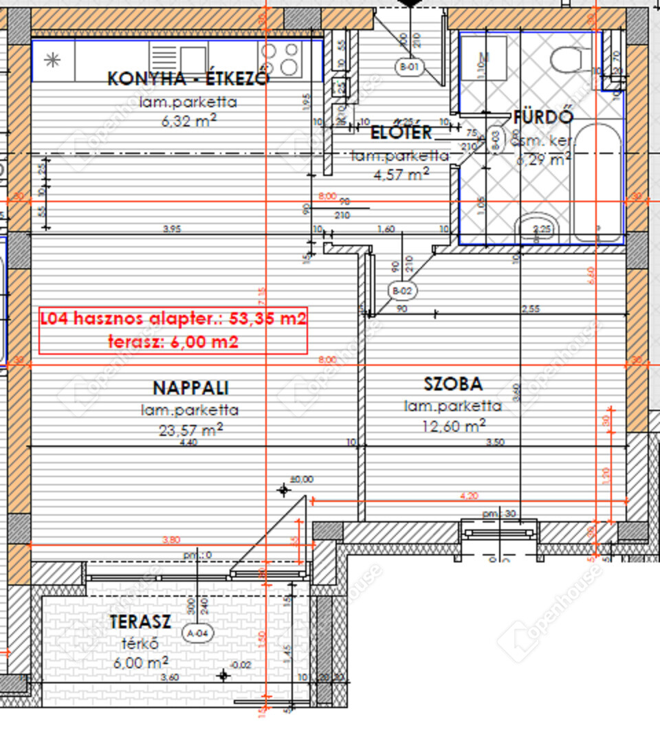 - nettó 53,35 m2-es lakás + 6,00 m2-es fedett erkély