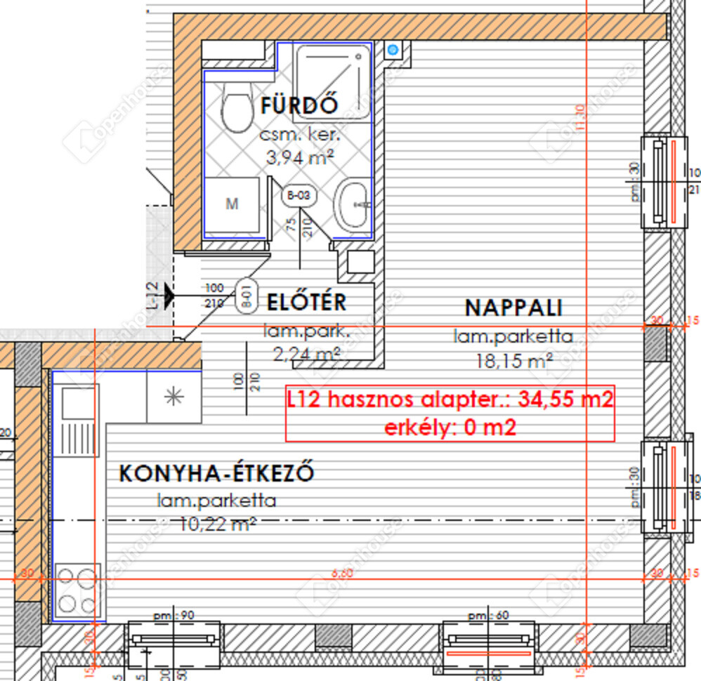 | Konyha | 10.22 m2 | Laminált padló |