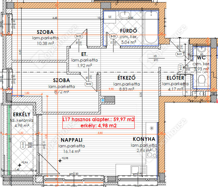 - nettó 59,97 m2-es lakás + 4,98 m2-es fedett erkély