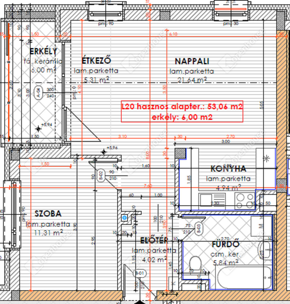 - nettó 53,06 m2-es lakás + 6,00 m2-es fedett erkély