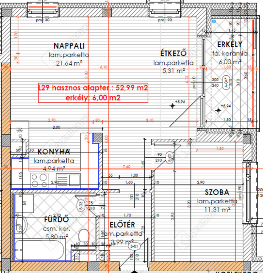 - nettó 52.99 m2-es lakás + 6,00 m2-es fedett erkély