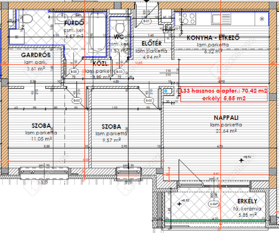 - nettó 70.42 m2-es lakás + 5,85 m2-es fedett erkély