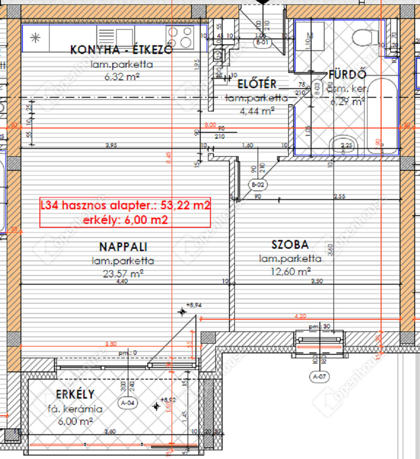 - nettó 53,22 m2-es lakás + 6,00 m2-es fedett erkély