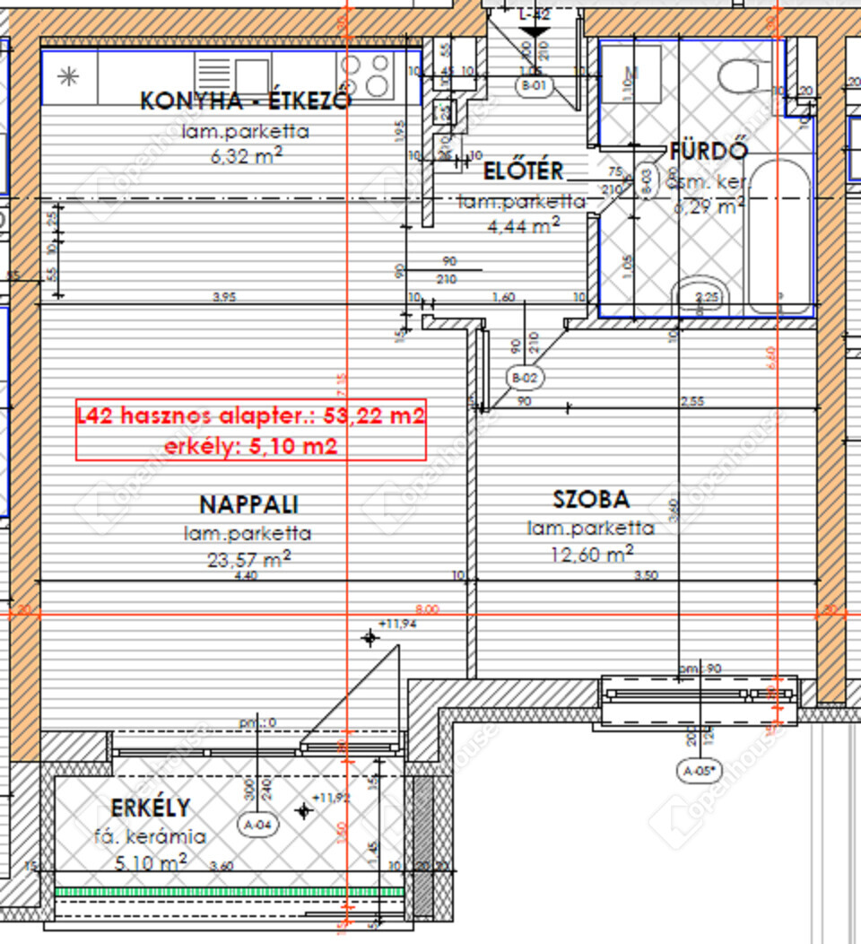- nettó 53,22 m2-es lakás + 5,10 m2-es fedett erkély