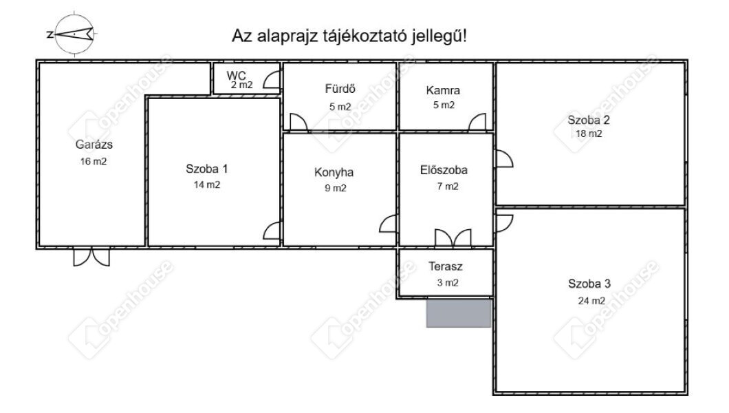 | Garázs | 16.00 m2 | Burkolat nélküli |