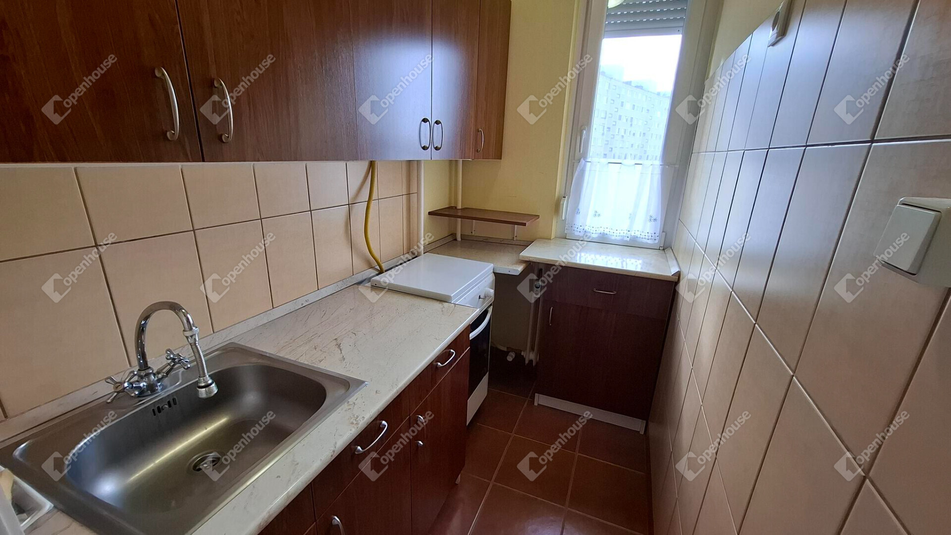 A lakás 35 négyzetméter alapterületű, 10 emeletes liftes panelház ötödik emeletén található.