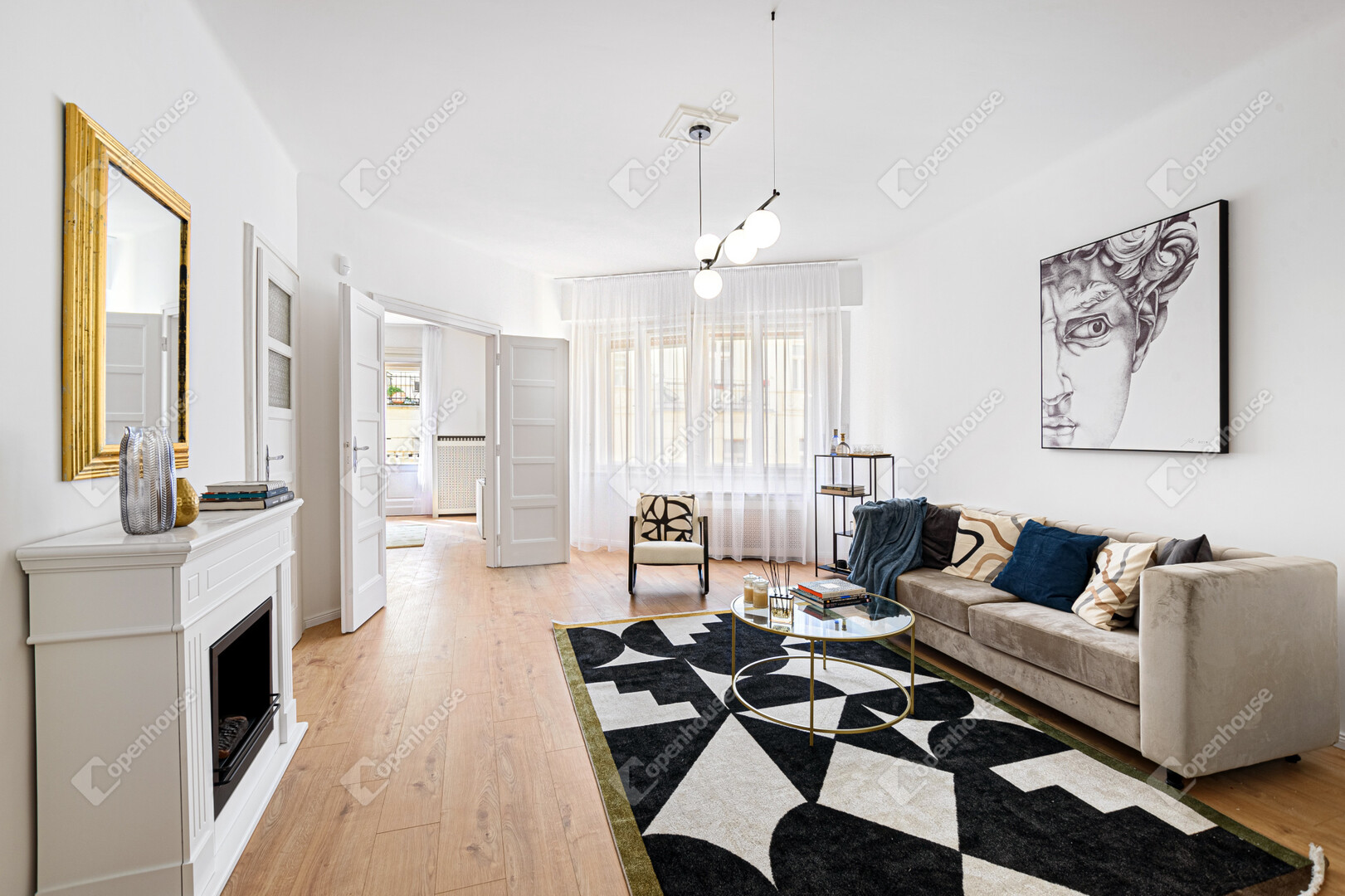 Központi elhelyezkedése ellenére az utca ezen része gyalogos, rendkívül nyugodt, így a lakás ritka kombinációját nyújtja a városi életnek és a meghitt nyugalomnak.