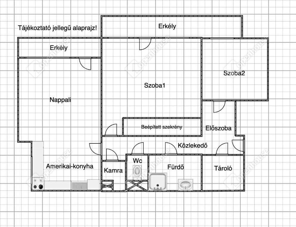 | Amerikai konyha | 5.74 m2 | Laminált padló |