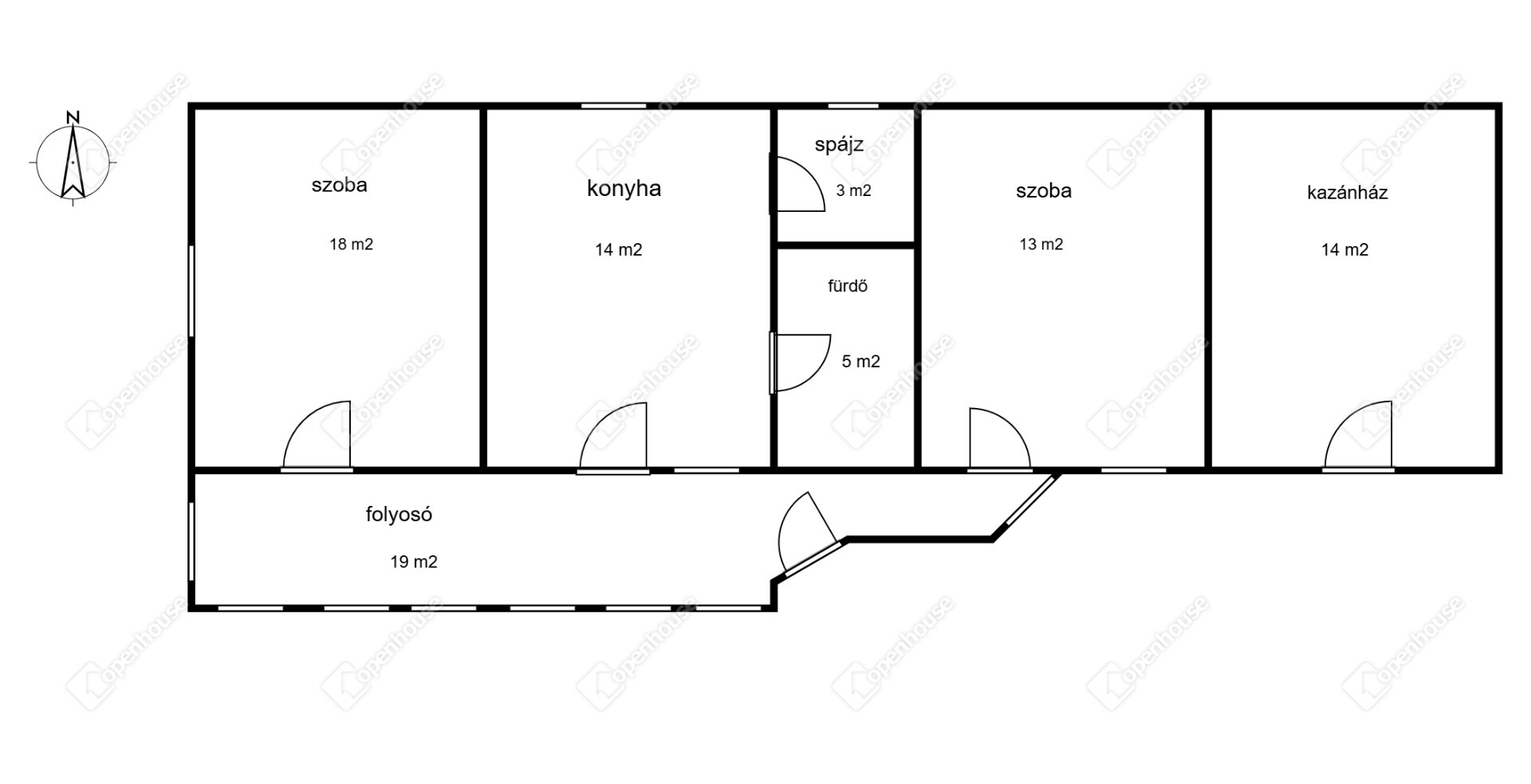 • Két szoba, konyha, kamra, fürdő WC-vel, széles folyosó