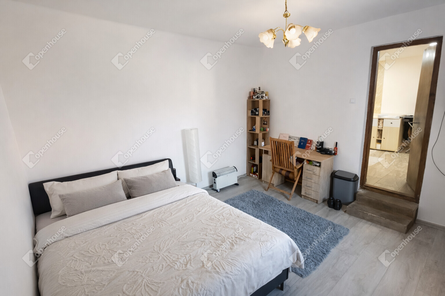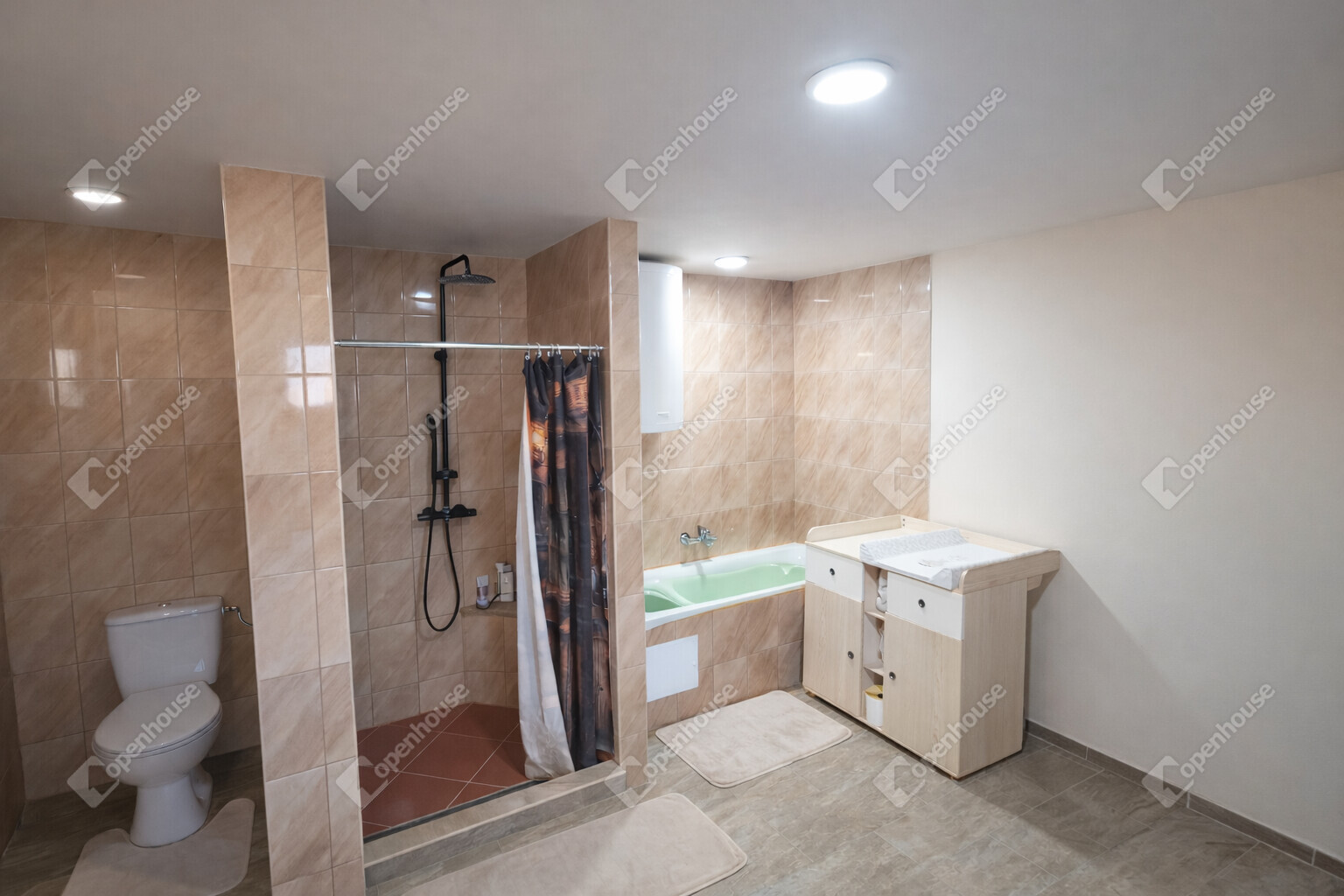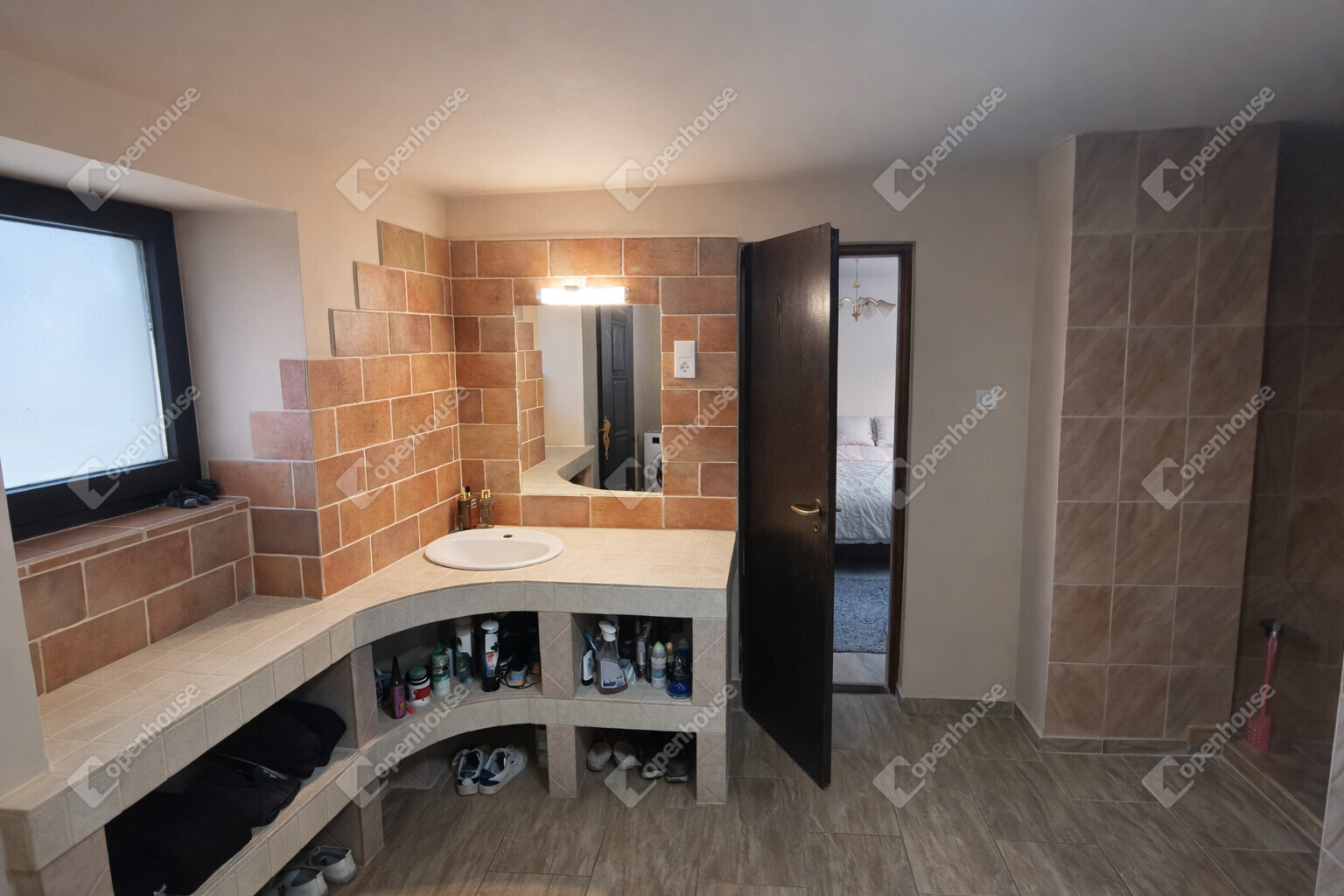 A tágas fürdőszoba szintén két irányból megközelíthető, ami tovább növeli a praktikumot és az együttélés komfortját.
