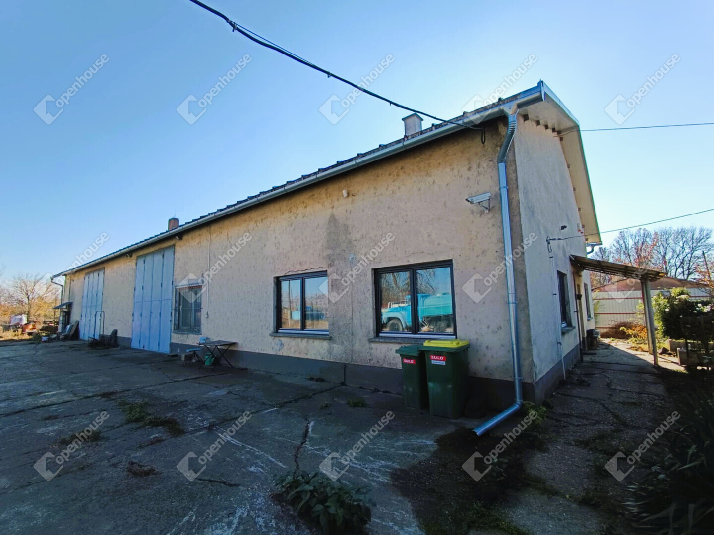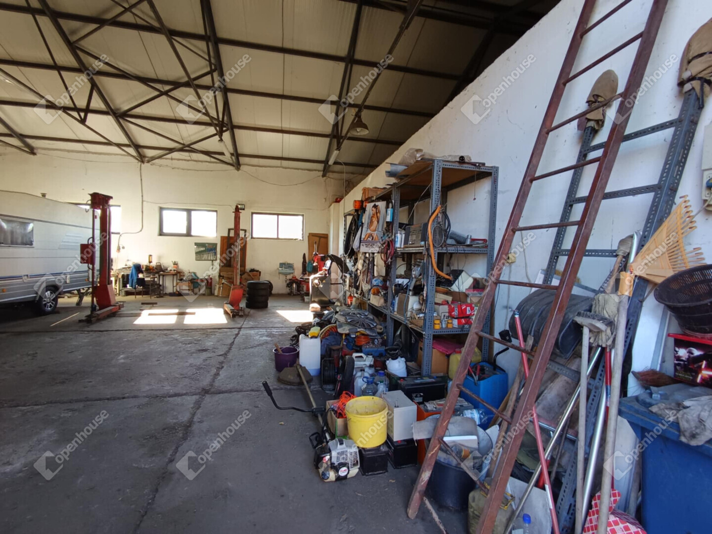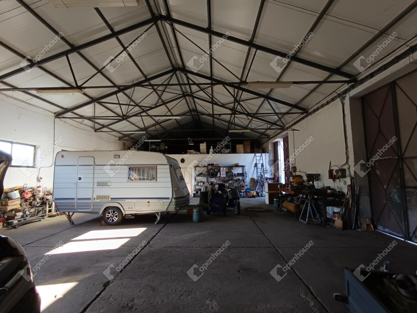 A tágas műhely járműszerelésre, raktározásra vagy könnyűipari tevékenységre is alkalmas, ami széles körű bérbeadhatóságot biztosít.