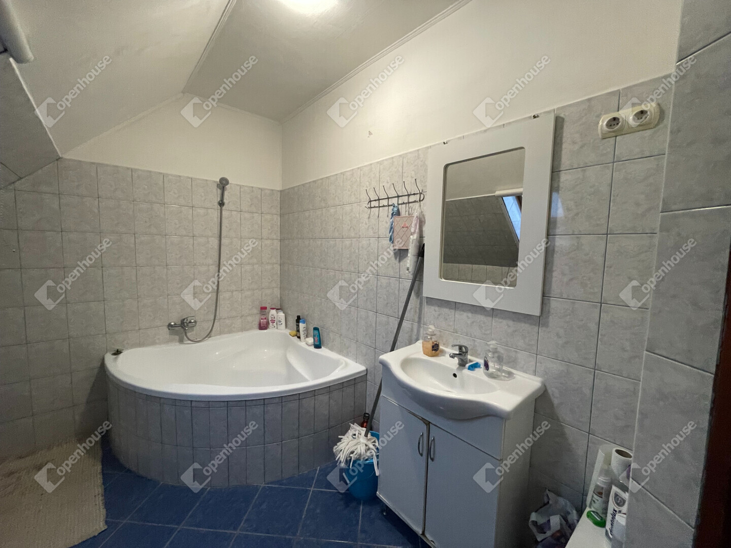 - A nappaliból lépcsőn keresztül jutunk fel a tetőtérbe , ahol a három hálószoba és a tágas fürdőszoba található.