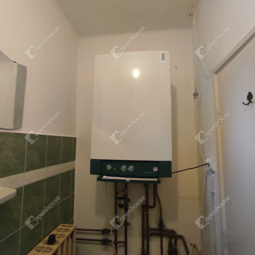 A megfelelő hőmérsékletet gázkazán biztosítja, radiátoros hőleadással, és egyik szobában cserépkályha is található.