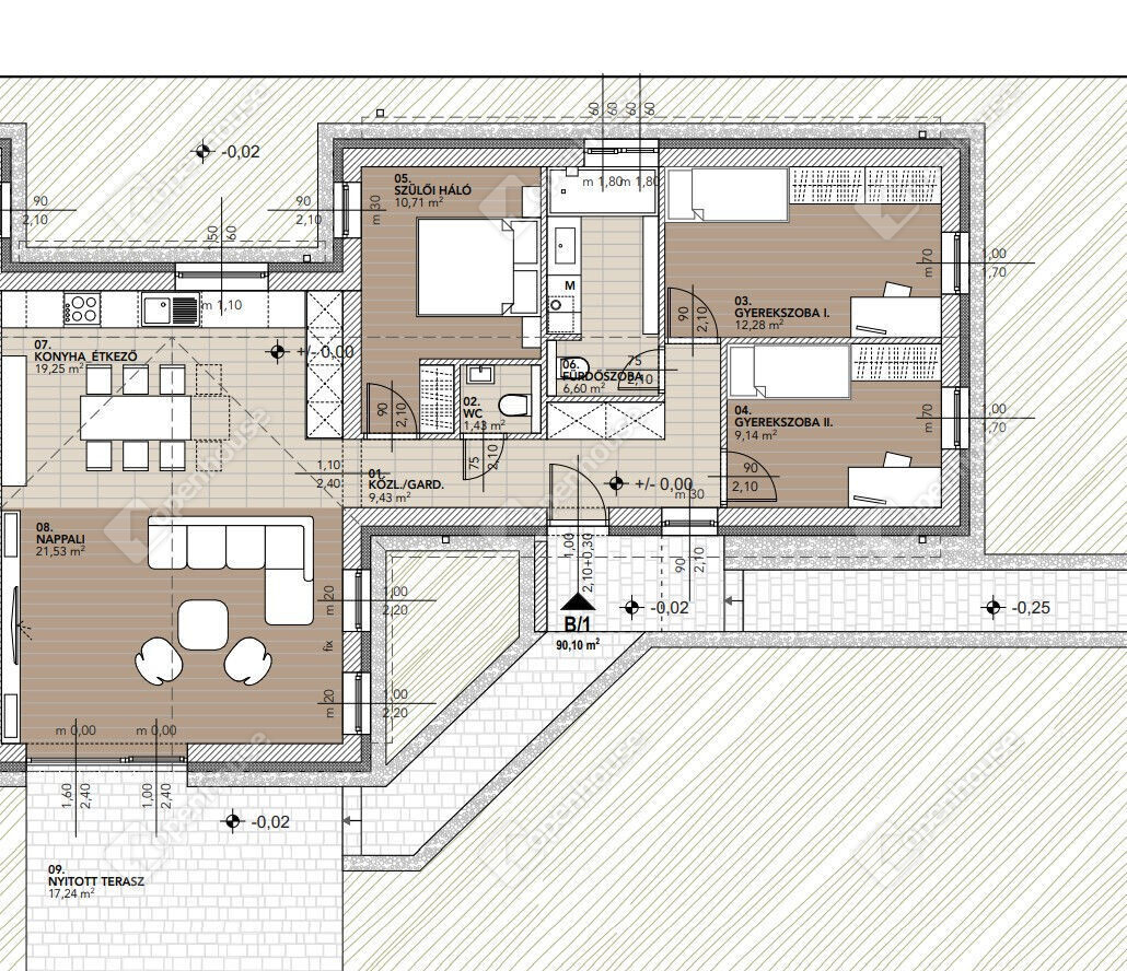 - 90,37 m2 lakótér + 17,24 m2 terasz