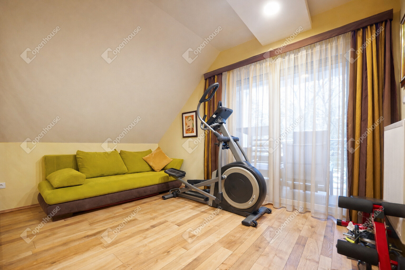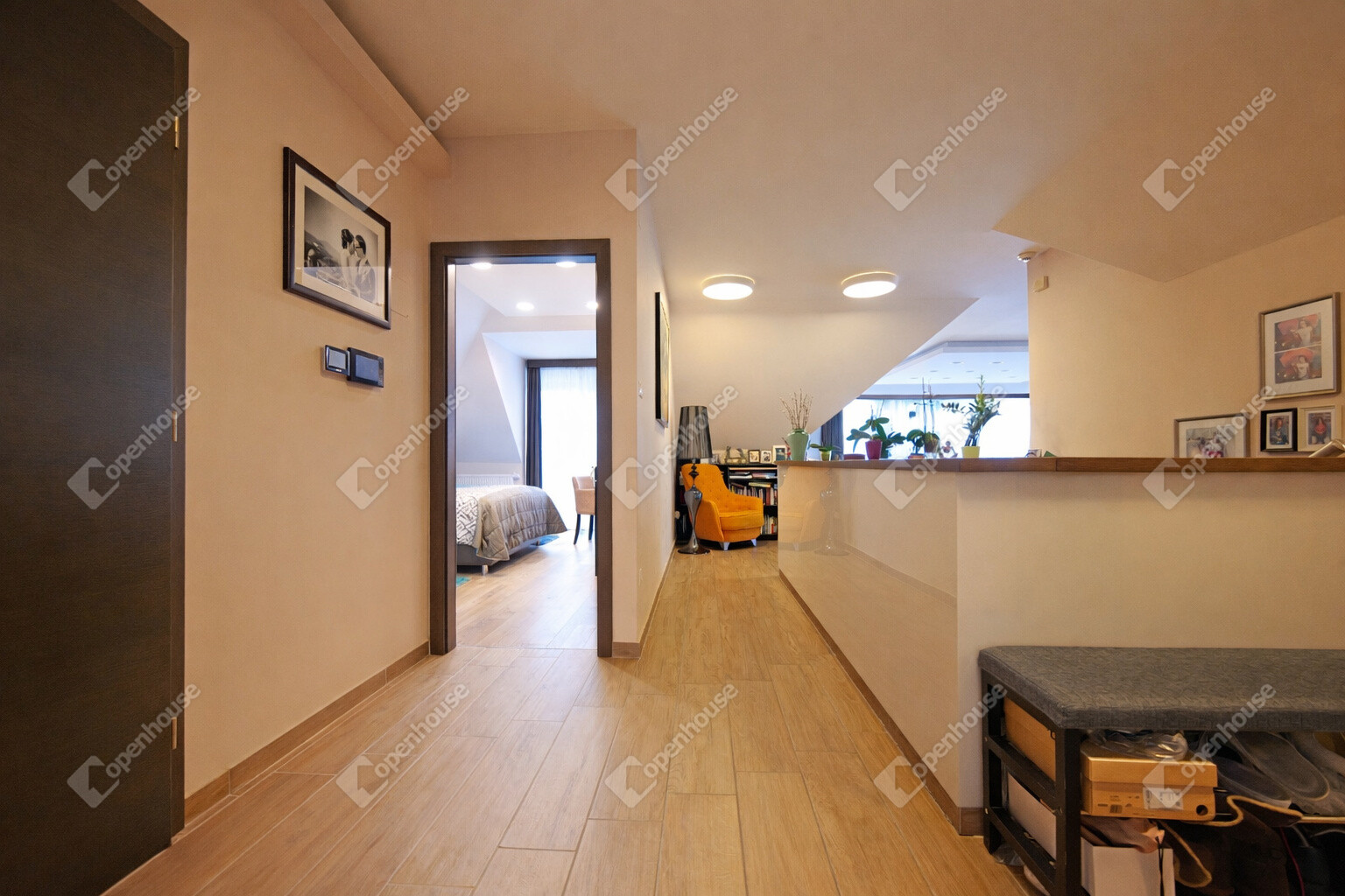 A 1900 m²-es telken, 2016-ban épült, mindössze 6 lakásos társasház felső szintjén csak ez az egy lakás található, ami garantálja a maximális nyugalmat és intimitást.