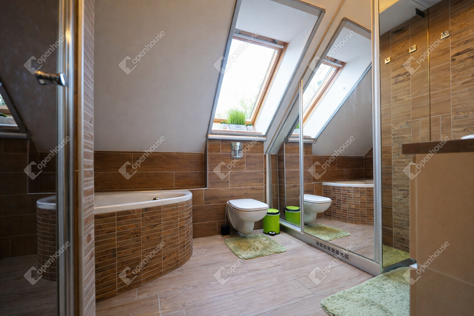 Fürdőszoba: kád, zuhanyzó és dupla mosdó
