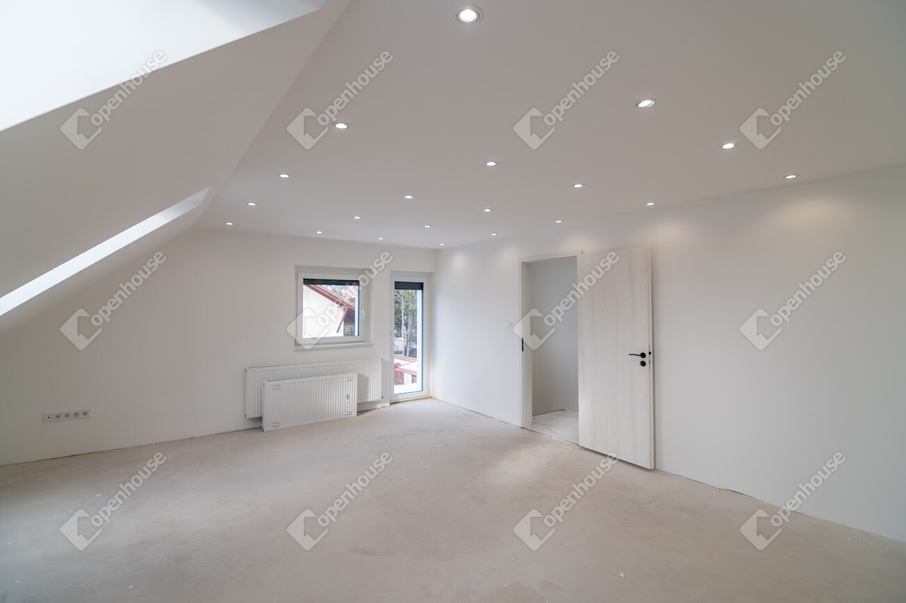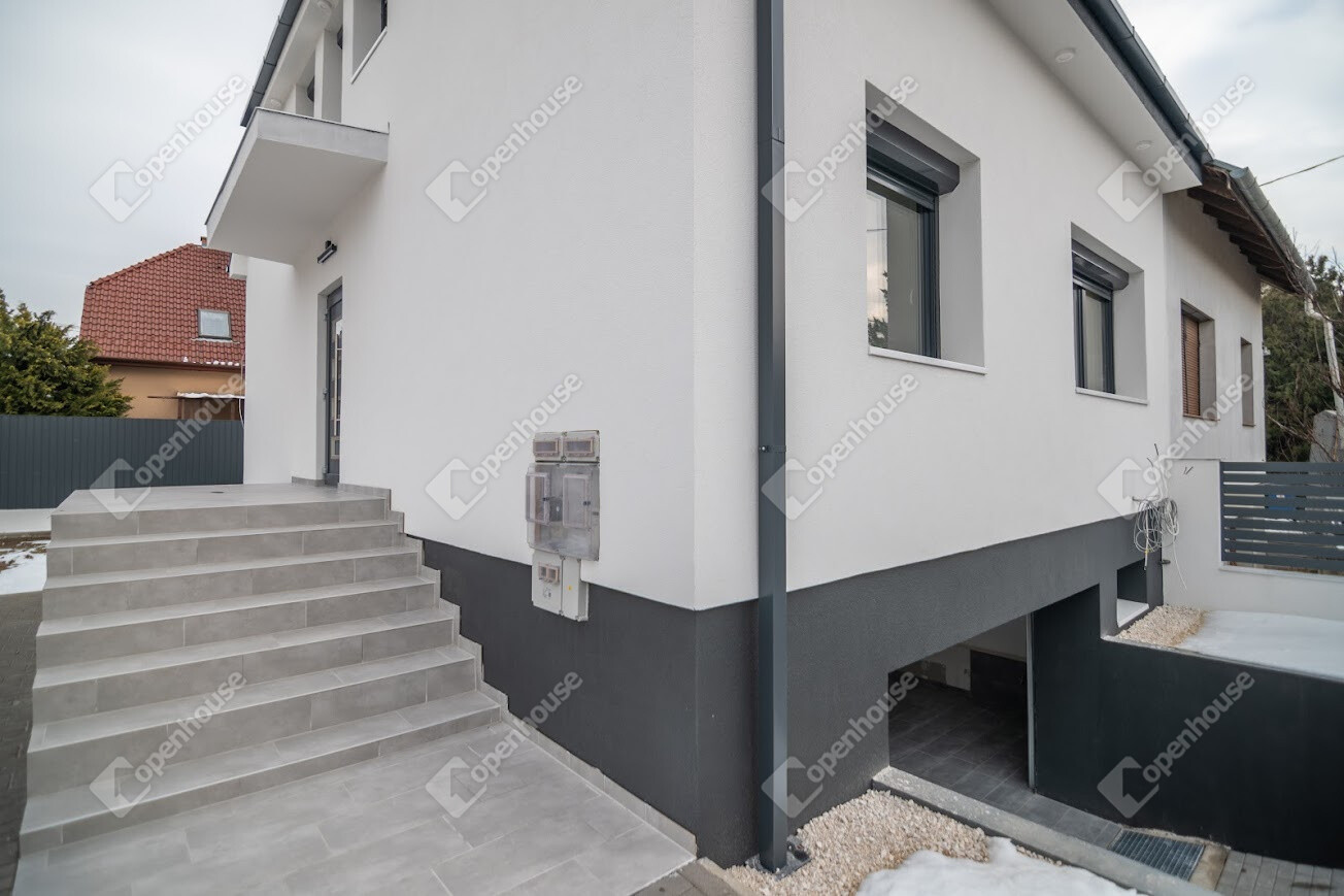 Az ingatlan 4 szobával, tágas nappalival, ablakos szuterén szinttel és két autó számára is kényelmes garázzsal rendelkezik. Az utca átmenő forgalomtól mentes, így a környék az almáskerti építkezések ellenére is nyugodt, kiegyensúlyozott lakókörnyezetet biztosít.