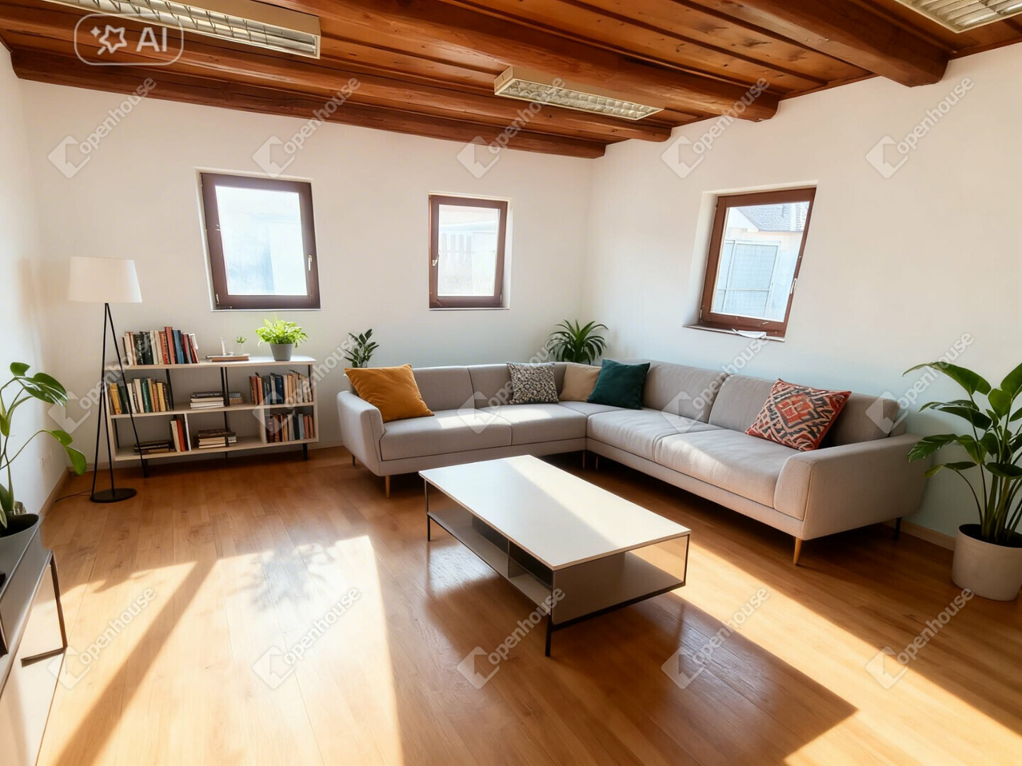 A ház fafödémmel készült, a látható gerendák pedig különleges karaktert adnak a térnek. A fa nyílászárók harmonikusan illeszkednek ehhez a stílushoz, miközben kellemes hőérzetet biztosítanak.