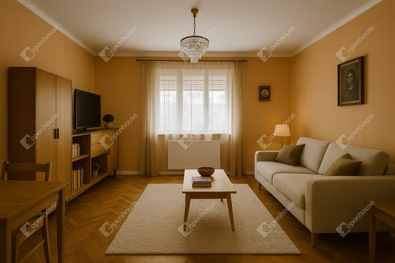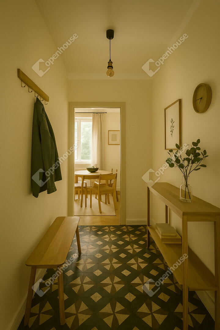 Kiváló elosztás (és újragondolás): A jelenlegi 2 szoba + konyha + kamra + fürdő elosztás a terek észszerűsítésével modern, amerikai konyhás nappalivá és kényelmes hálószobákká alakítható.