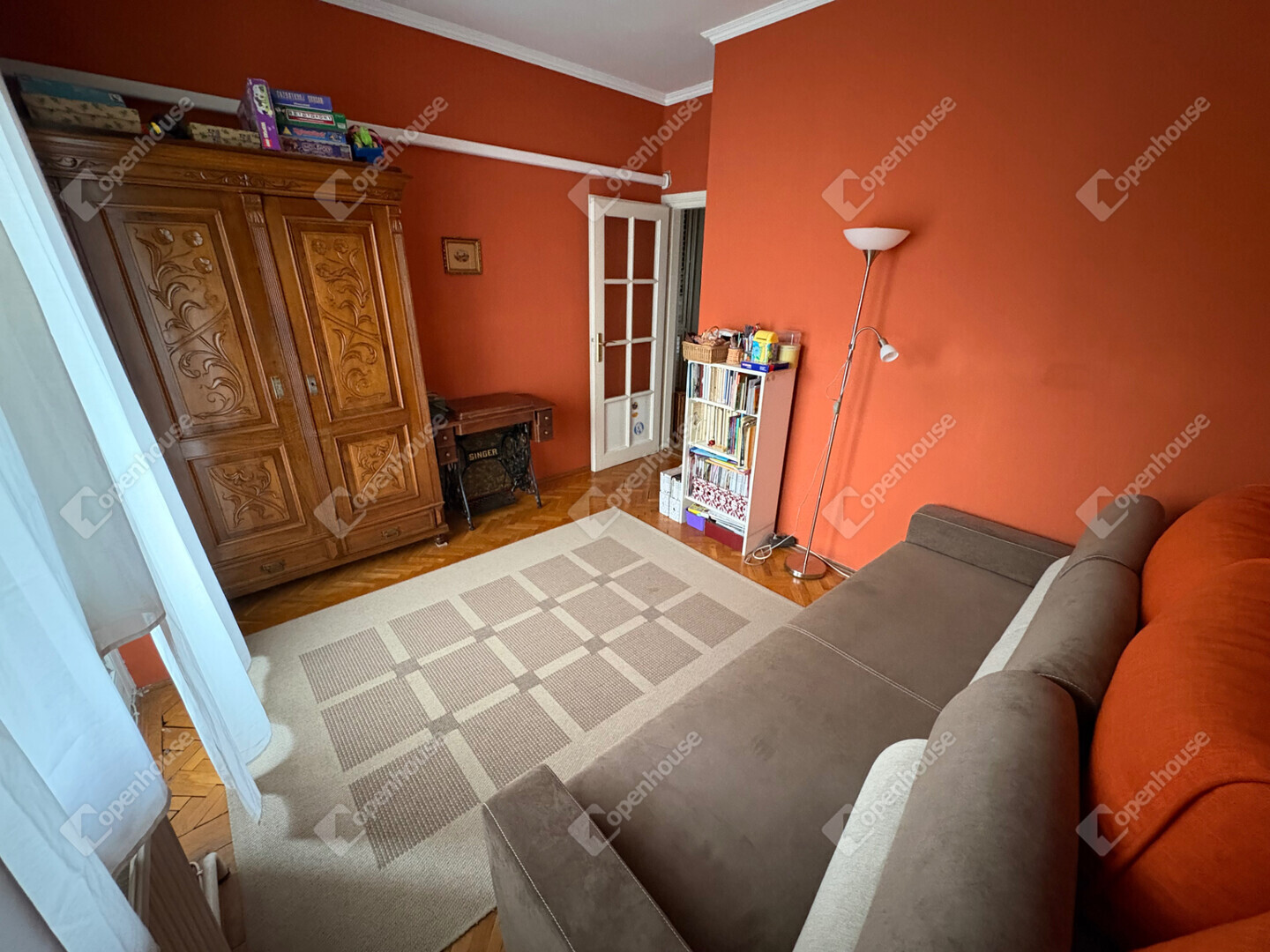 A lakás elrendezése nappali plusz három szoba, melyből kettő külön nyílik, egy pedig a nappaliból érhető el.