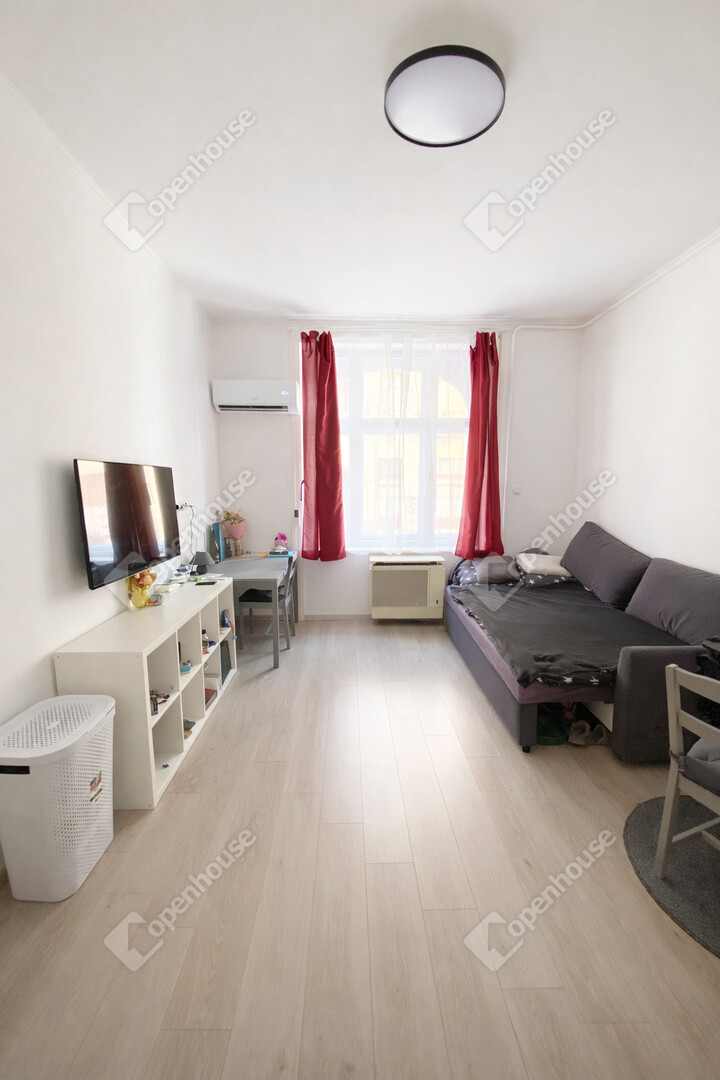 Eladó egy 27 nm-es, felújított lakás, rendezett környezetben, kiváló közlekedéssel.