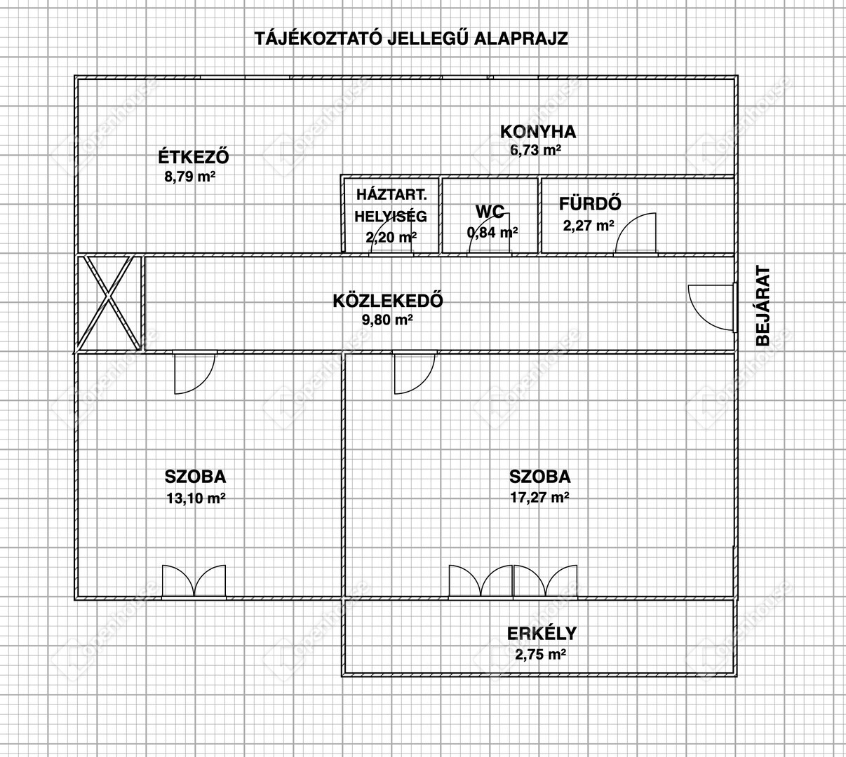 | Közlekedő | 9.80 m2 | Hajópadló |