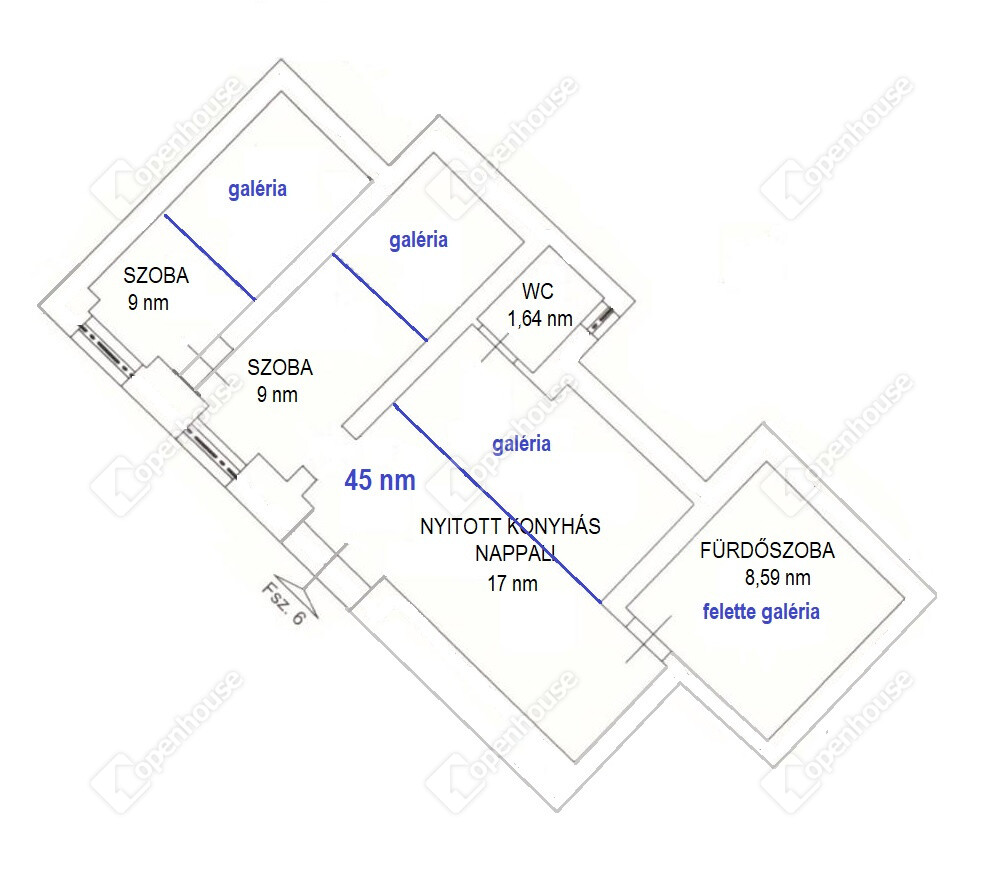 - nyitott konyhás nappali, ( konyha felett nyitott galéria )
